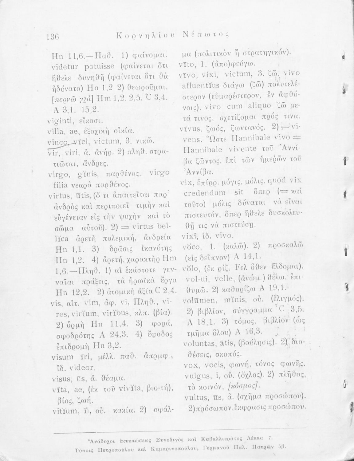 Τίτλος: Κορνηλίου Νέπωτος Βίοι (Εκλογαί) προς χρήσιν των μαθητών της Δ΄ τάξεως των Γυμνασίων παλαιού τύπου και την Ε΄ τάξιν των Γυμνασίων νέου τύπου