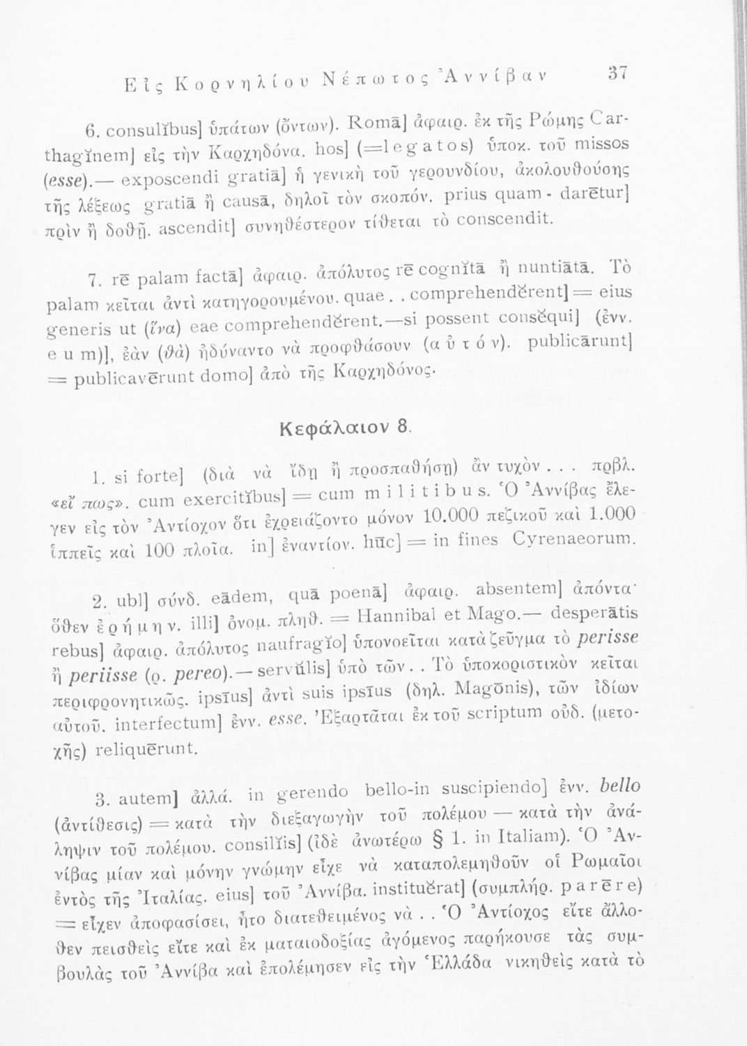 Σχολικό εγχειρίδιο Λατινικών για την Δ΄ Γυμνασίου παλαιού τύπου και την Ε΄ Γυμνασίου νέου τύπου που περιέχει σύντομο βιογραφικό σημείωμα του Νέπωτα, αποσπάσματα από τα έργα Αμίλκας, Αννίβας, Κάτων και Αττικός ερμηνευτικές σημειώσεις, ιστορικό και γεωγραφικό πίνακα και λεξιλόγιο. Ο συγγραφέας ήταν καθηγητής της Λατινικής Φιλολογίας στο Πανεπιστήμιο Αθηνών.