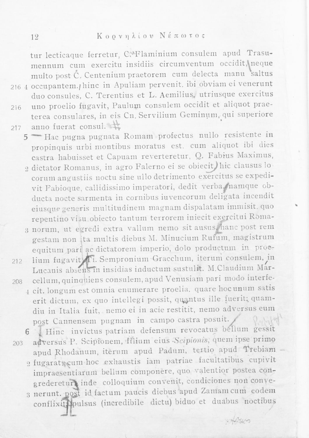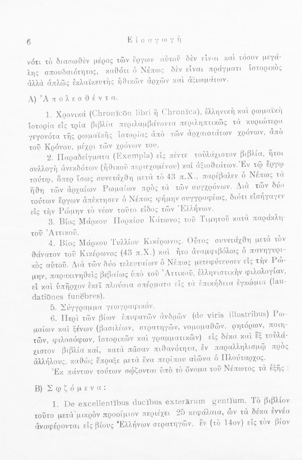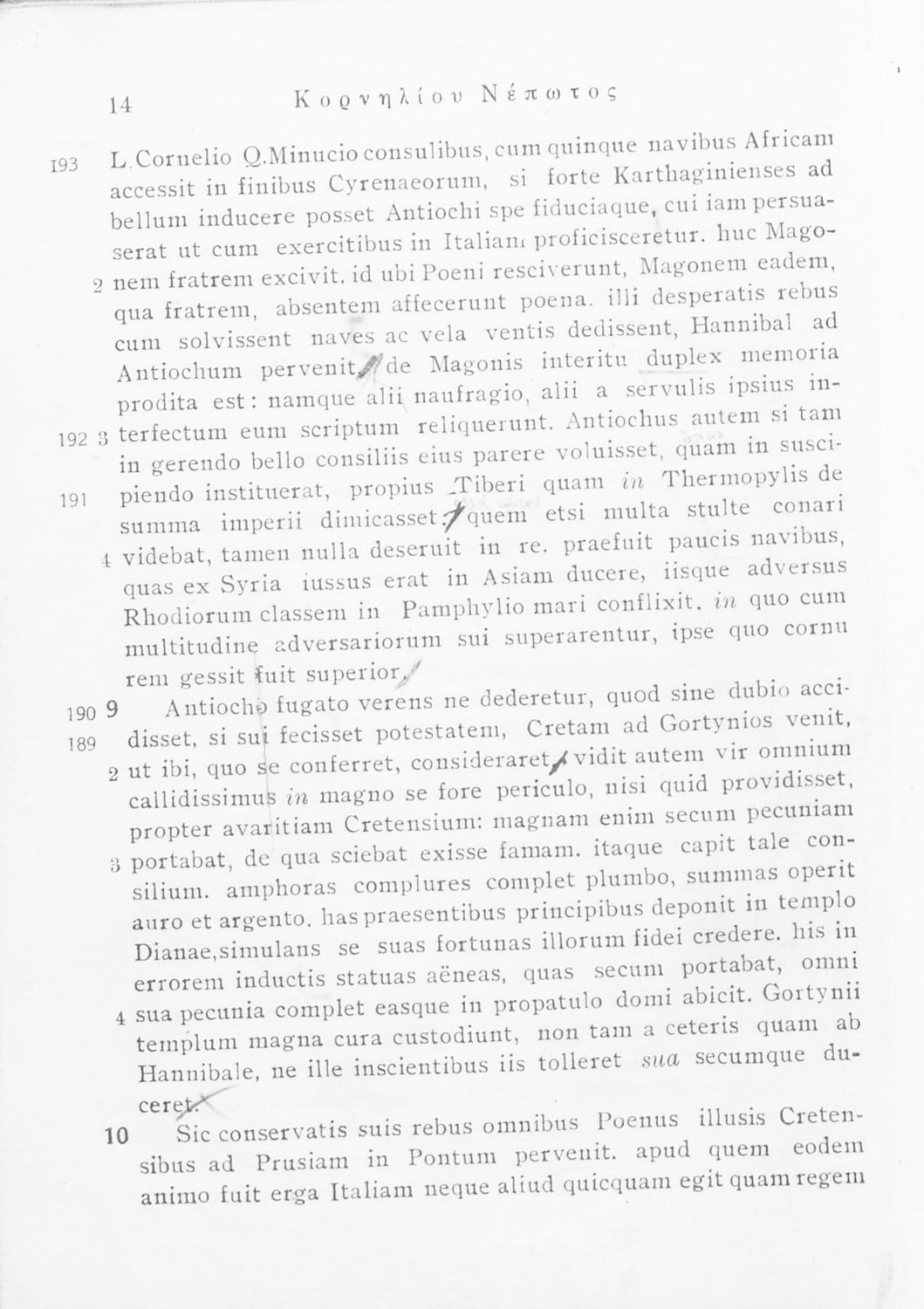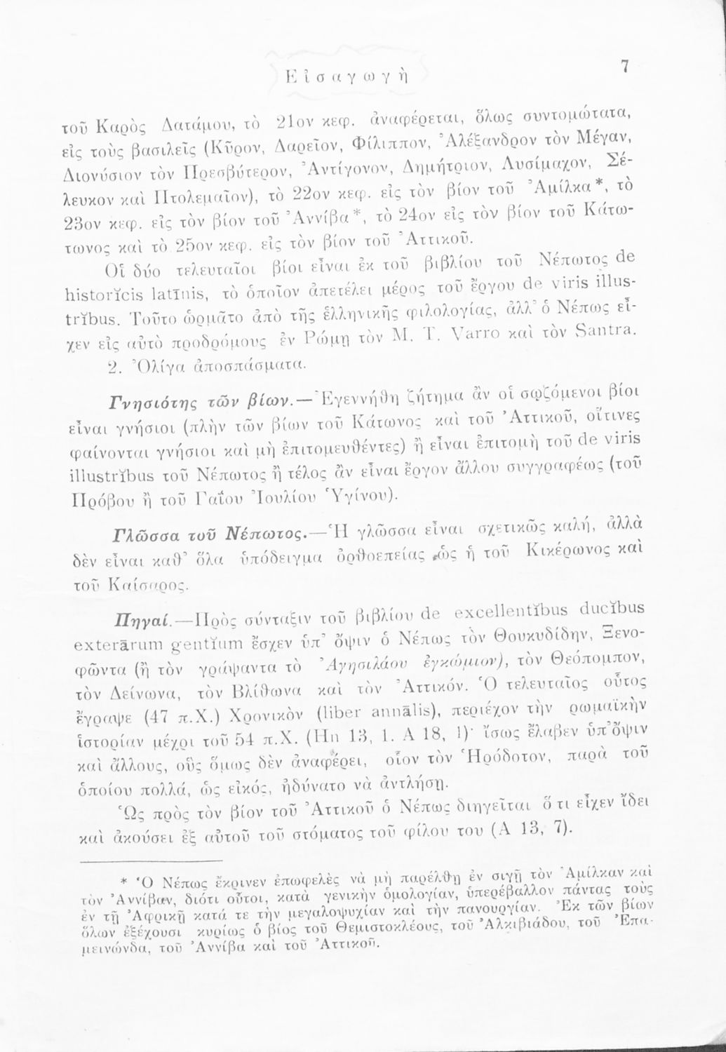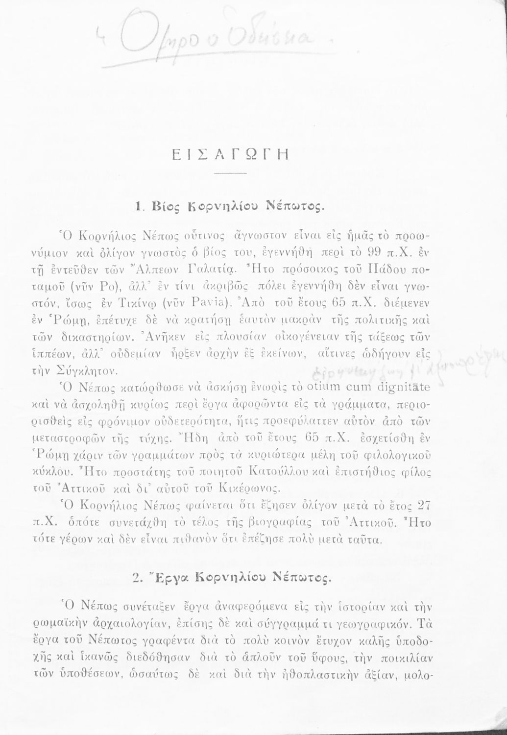 Σχολικό εγχειρίδιο Λατινικών για την Δ΄ Γυμνασίου παλαιού τύπου και την Ε΄ Γυμνασίου νέου τύπου που περιέχει σύντομο βιογραφικό σημείωμα του Νέπωτα, αποσπάσματα από τα έργα Αμίλκας, Αννίβας, Κάτων και Αττικός ερμηνευτικές σημειώσεις, ιστορικό και γεωγραφικό πίνακα και λεξιλόγιο. Ο συγγραφέας ήταν καθηγητής της Λατινικής Φιλολογίας στο Πανεπιστήμιο Αθηνών.