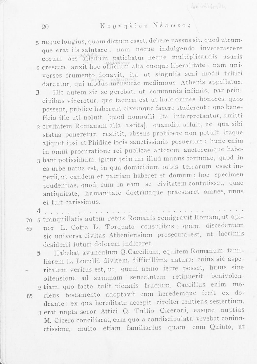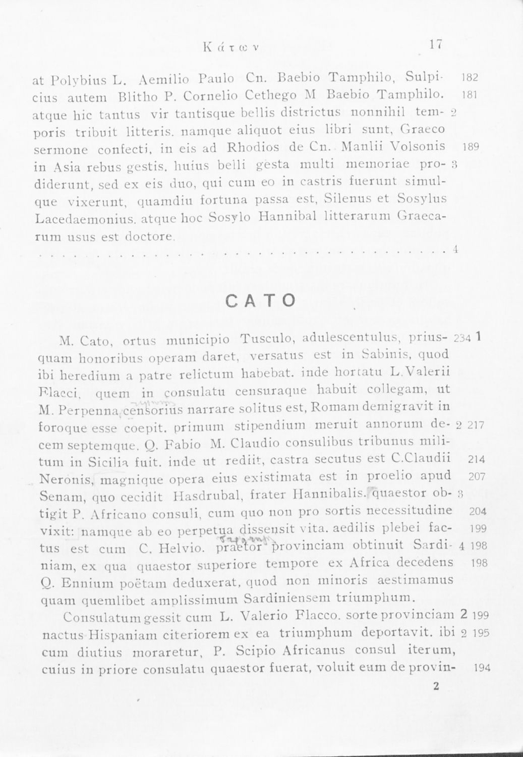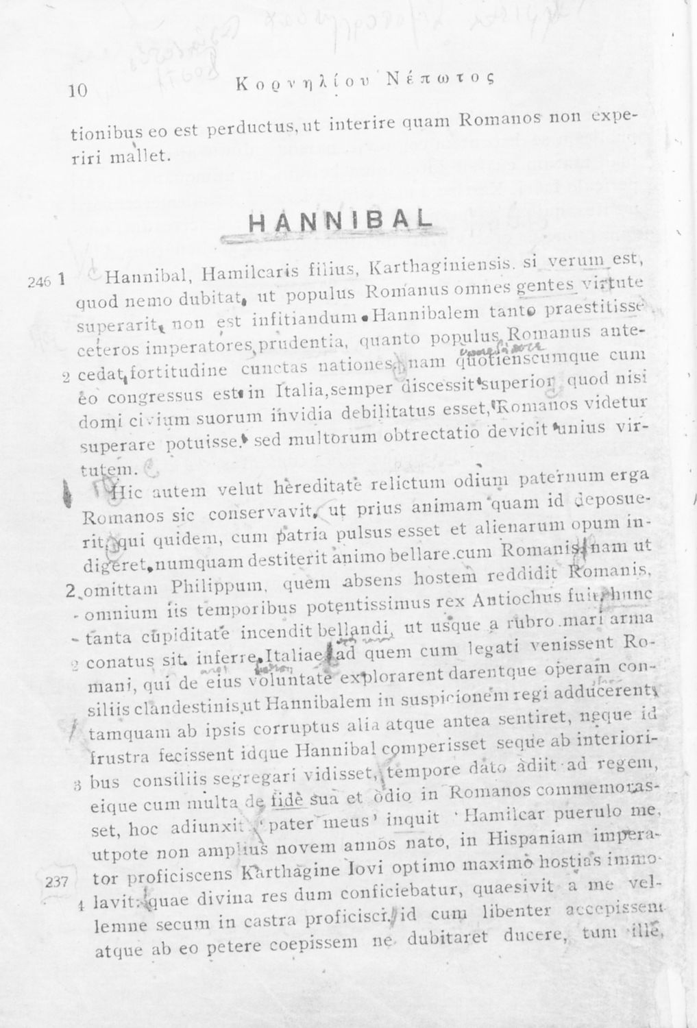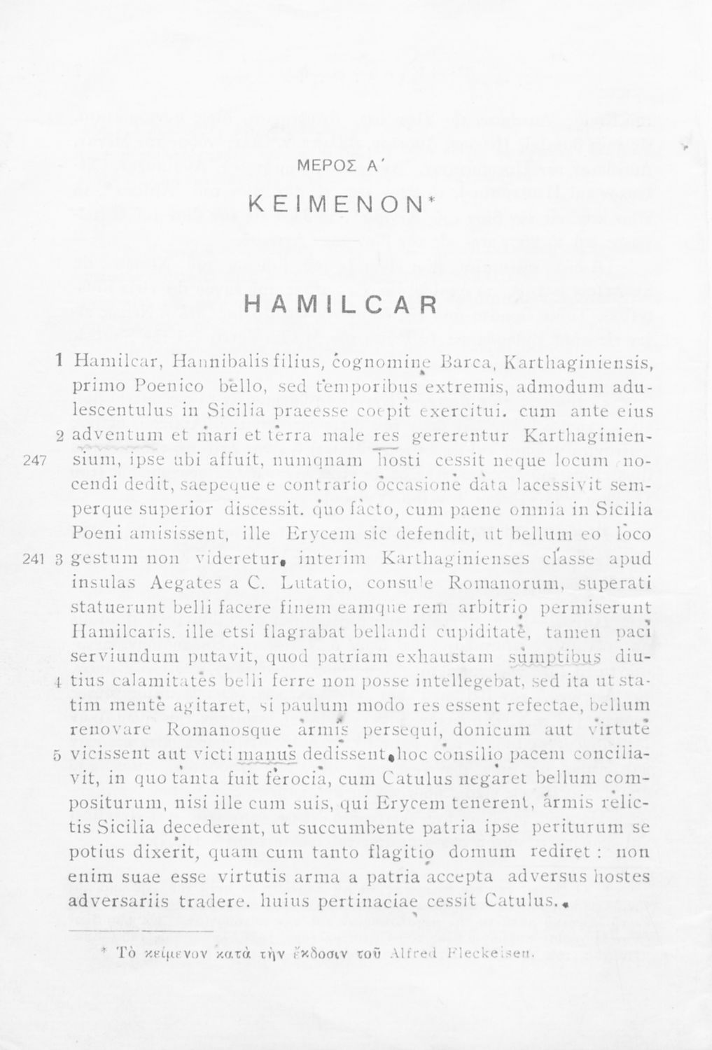 Βαθμίδα εκπαίδευσης: Δευτεροβάθμια Τάξη: Δ΄ Γυμνασίου παλαιού τύπου / Ε' Γυμνασίου νέου τύπου Μάθημα: Λατινικά Γλώσσα: Καθαρεύουσα Παρουσίαση περιεχομένου: Σχολικό εγχειρίδιο Λατινικών για την Δ΄ Γυμνασίου παλαιού τύπου και την Ε΄ Γυμνασίου νέου τύπου που περιέχει σύντομο βιογραφικό σημείωμα του Νέπωτα, αποσπάσματα από τα έργα Αμίλκας, Αννίβας, Κάτων και Αττικός ερμηνευτικές σημειώσεις, ιστορικό και γεωγραφικό πίνακα και λεξιλόγιο. Ο συγγραφέας ήταν καθηγητής της Λατινικής Φιλολογίας στο Πανεπιστήμιο Αθηνών. |