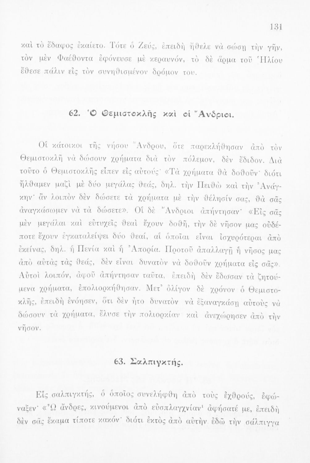 Σχολικό εγχειρίδιο Αρχαίων Ελληνικών Γυμνασίου που περιέχει κείμενα βασισμένα στην αρχαία ελληνική ιστορία και μυθολογία και γραμματικές, συντακτικές και ετυμολογικές παρατηρήσεις.