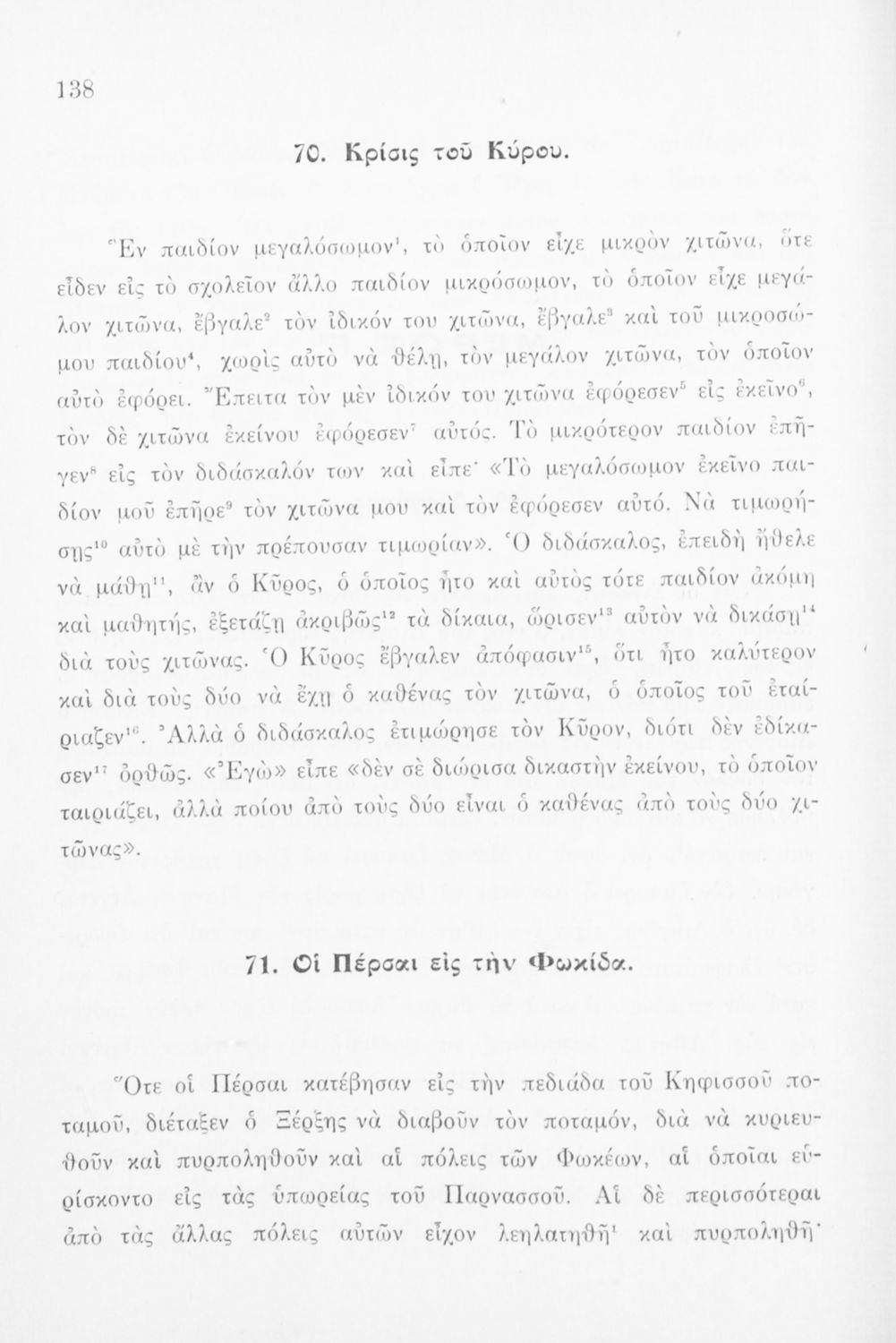 Σχολικό Εγχειρίδιο Αρχαίων Ελληνικών Α' και Β΄ Γυμνασίου που περιλαμβάνει κείμενα προσαρμοσμένα στη διδασκαλία των γραμματικών και συντακτικών φαινομένων, και ερμηνευτικές και λεξιλογικές σημειώσεις.