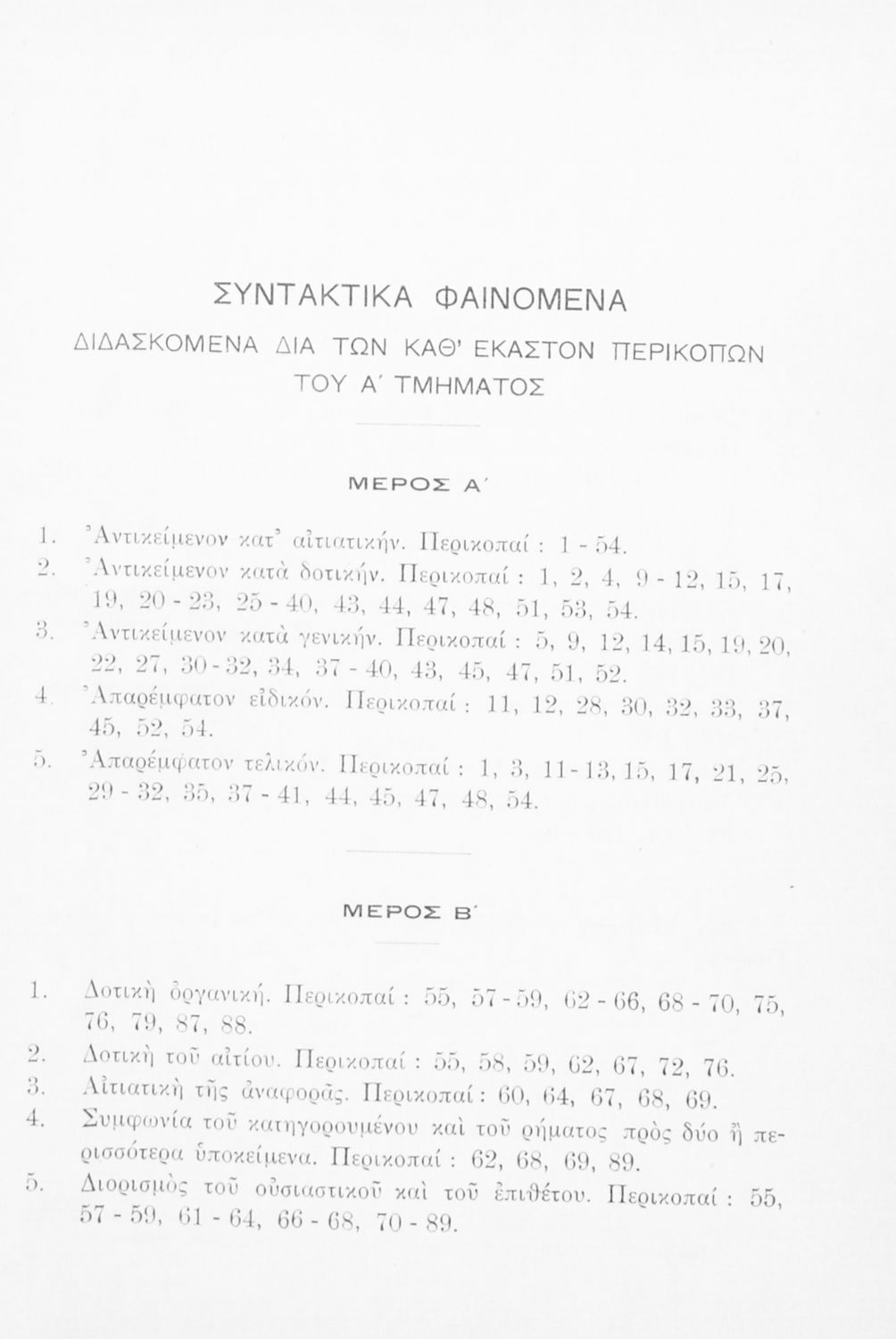 Σχολικό εγχειρίδιο Αρχαίων Ελληνικών Δ΄ και Ε΄ Γυμνασίου που εξετάζει τα μέρη του λόγου και την σύνταξή τους.