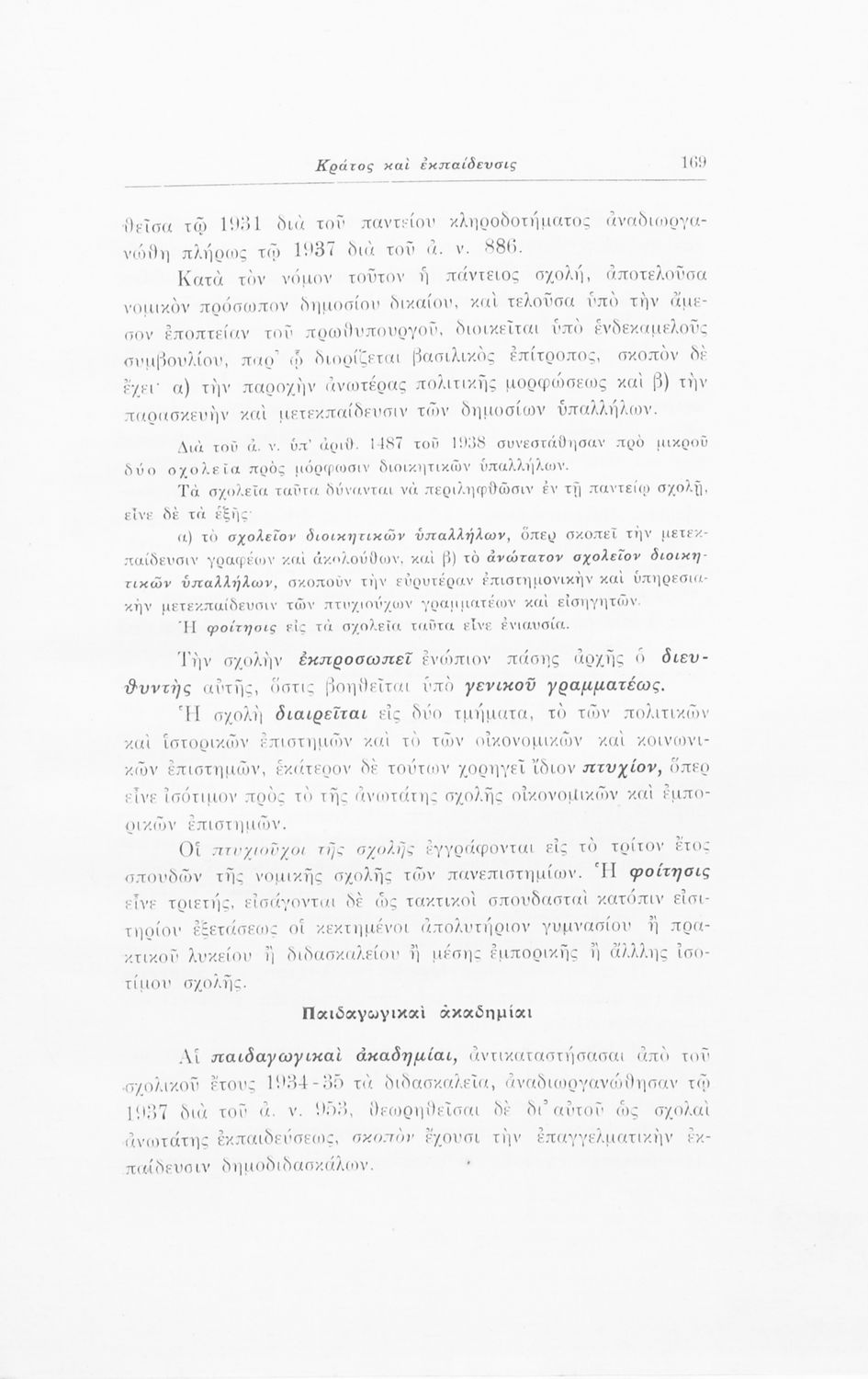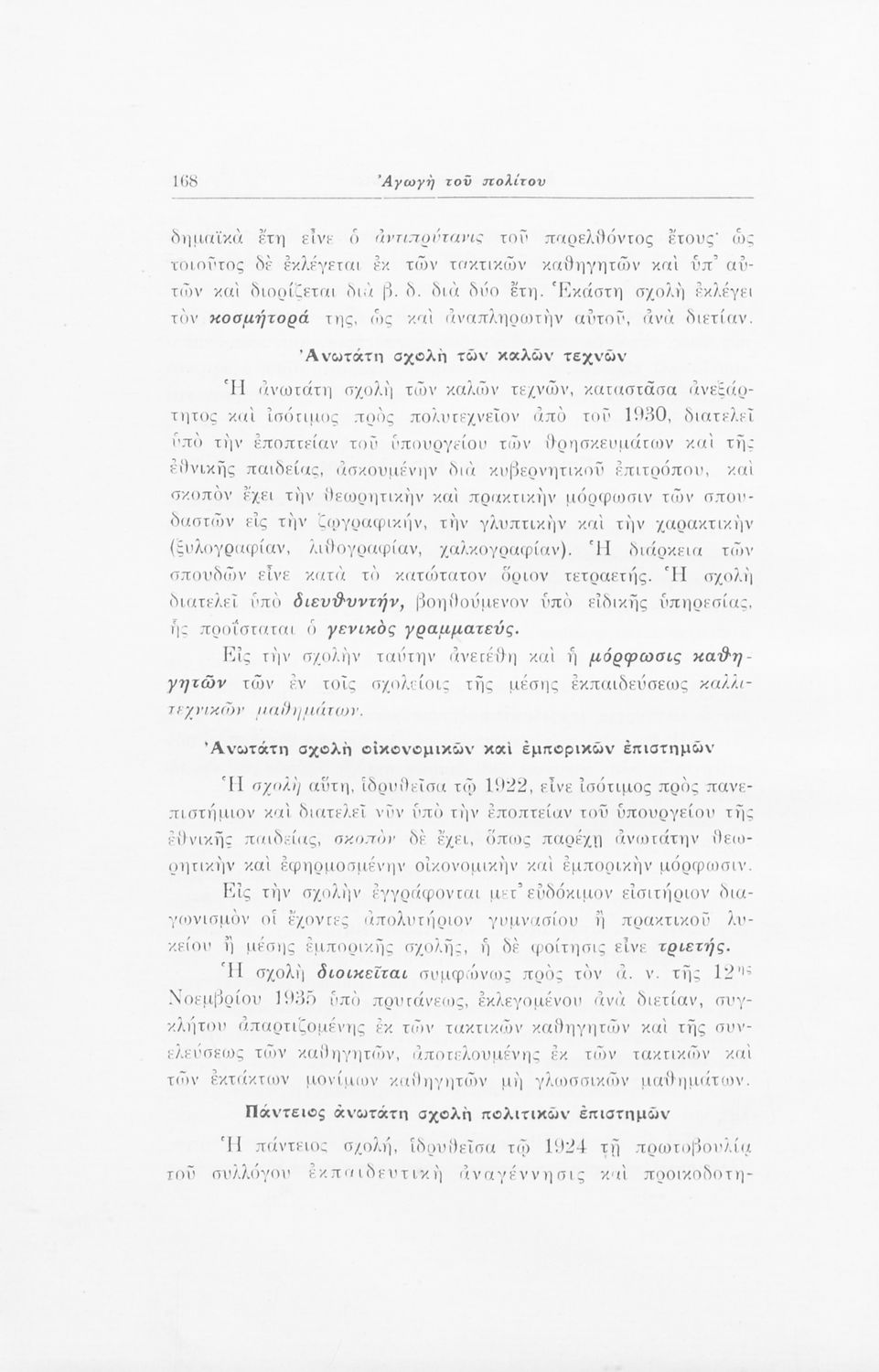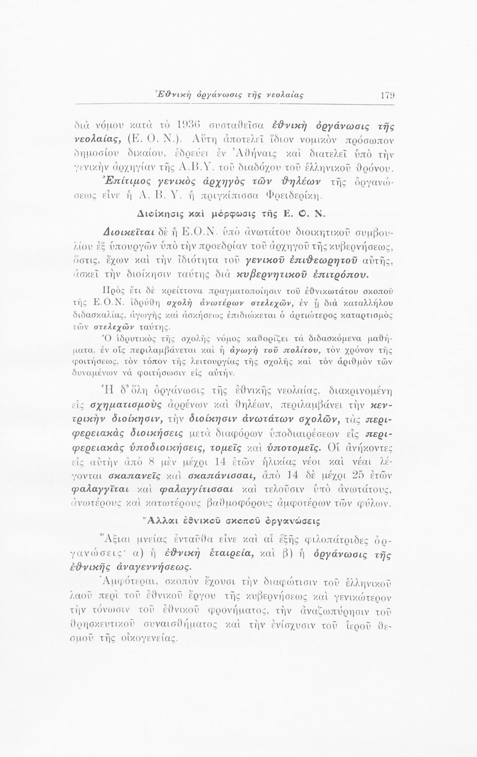 Σχολικό εγχειρίδιο Αγωγής του Πολίτη που αποσκοπεί όχι μόνο στην "μετάδοση στοιχειωδών γνώσεων δικαίου και πολιτικής οικονομίας αλλά κυρίως στην εθνοπρεπής πολιτική, κοινωνική και ηθική διάπλαση της ελληνικής νεολαίας" σύμφωνα με τα πρότυπα του καθεστώτος της 4ης Αυγούστου. Τις πρώτες σελίδες του βιβλίου κοσμούν φωτογραφίες του Γεωργίου του Β΄ και του Ιωάννη Μεταξά που φέρει τον τίτλο του "αρχηγού της εθνικής κυβερνήσεως και του γενικού επιθεωρητή της Ε.Ο.Ν". Ο συγγραφέας ήταν καθηγητής της Ιστορίας στο Πανεπιστήμιο Αθηνών.