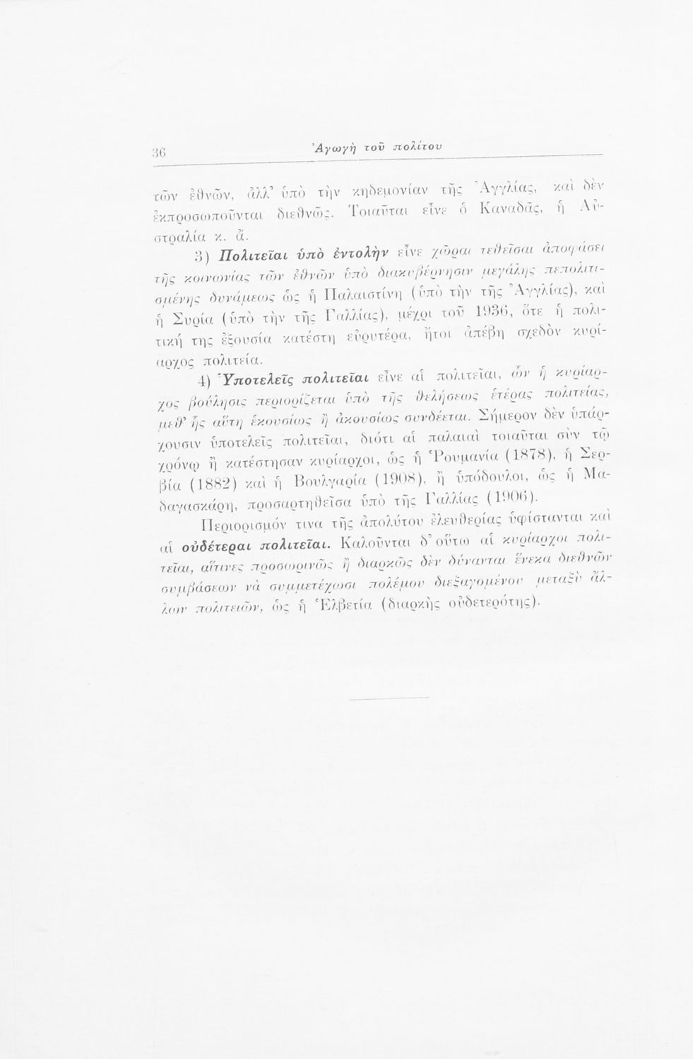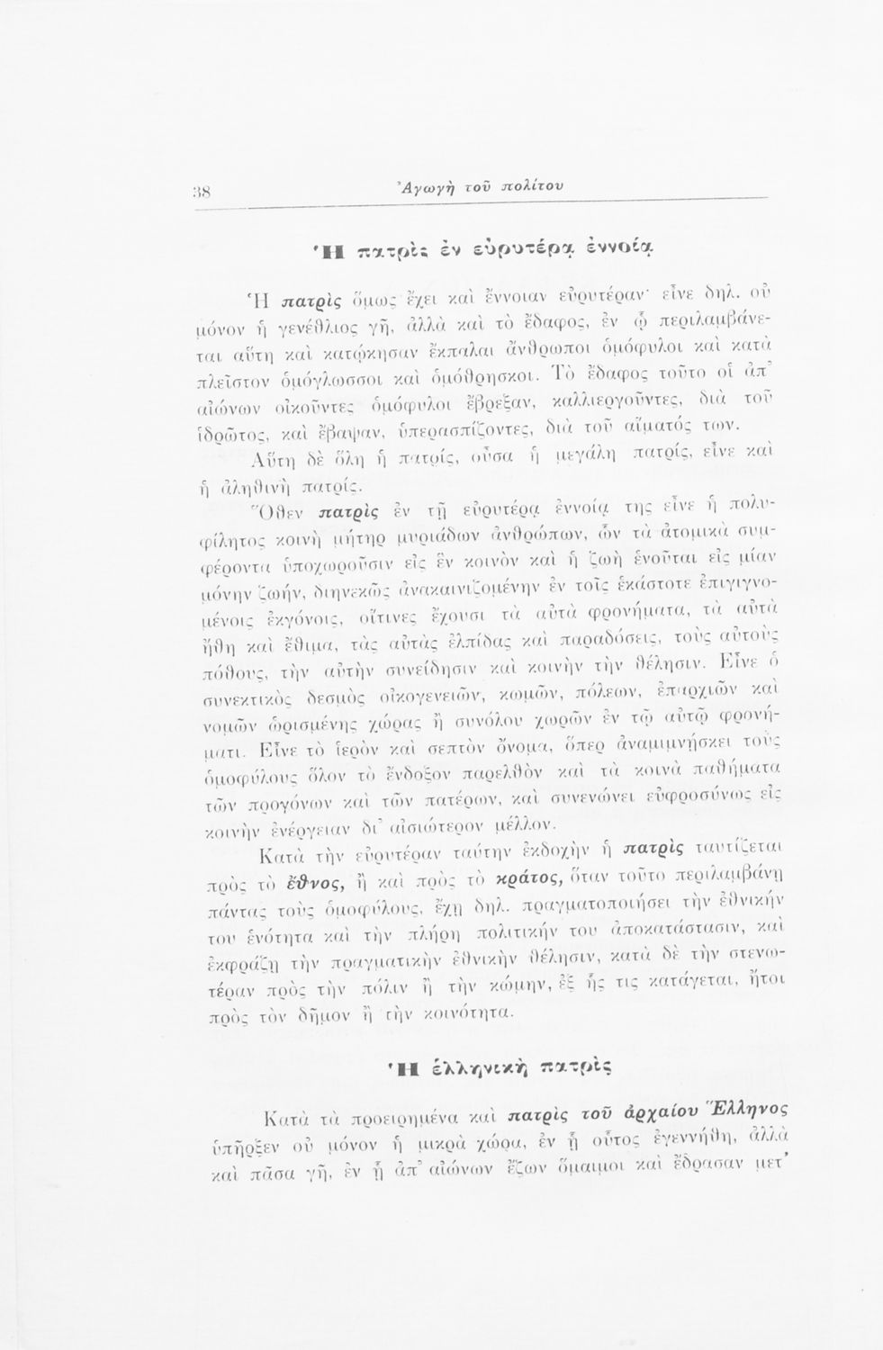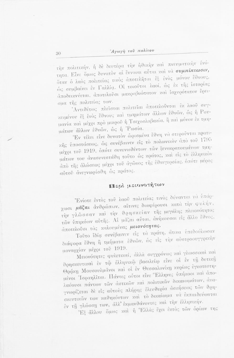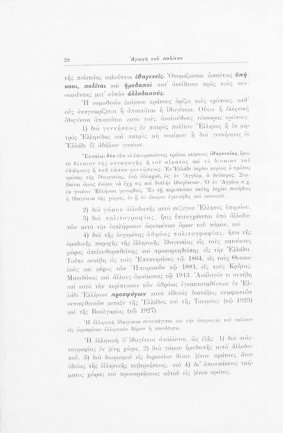 Σχολικό εγχειρίδιο Αγωγής του Πολίτη που αποσκοπεί όχι μόνο στην "μετάδοση στοιχειωδών γνώσεων δικαίου και πολιτικής οικονομίας αλλά κυρίως στην εθνοπρεπής πολιτική, κοινωνική και ηθική διάπλαση της ελληνικής νεολαίας" σύμφωνα με τα πρότυπα του καθεστώτος της 4ης Αυγούστου. Τις πρώτες σελίδες του βιβλίου κοσμούν φωτογραφίες του Γεωργίου του Β΄ και του Ιωάννη Μεταξά που φέρει τον τίτλο του "αρχηγού της εθνικής κυβερνήσεως και του γενικού επιθεωρητή της Ε.Ο.Ν". Ο συγγραφέας ήταν καθηγητής της Ιστορίας στο Πανεπιστήμιο Αθηνών.