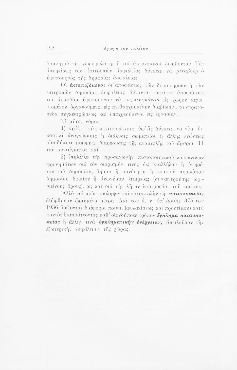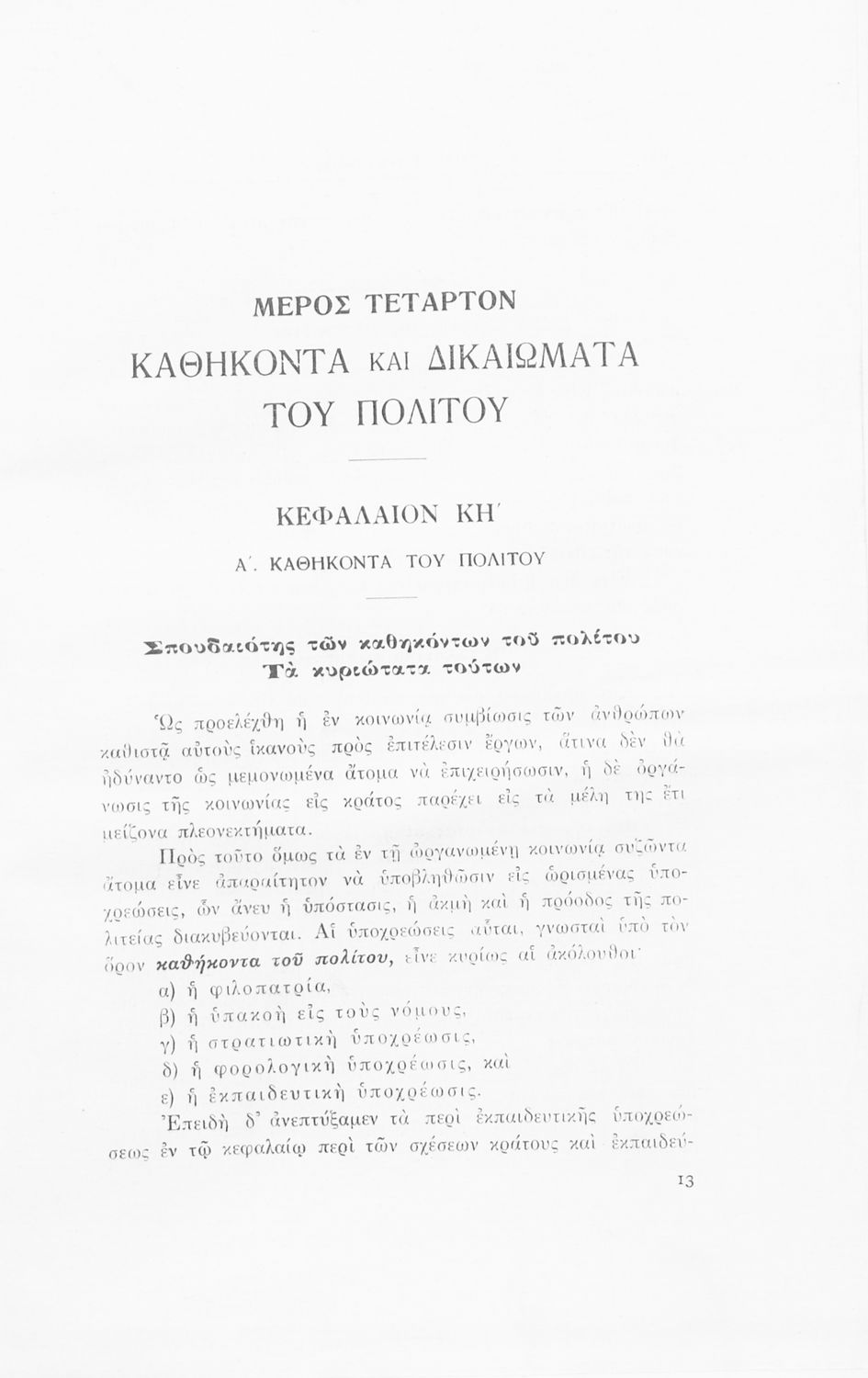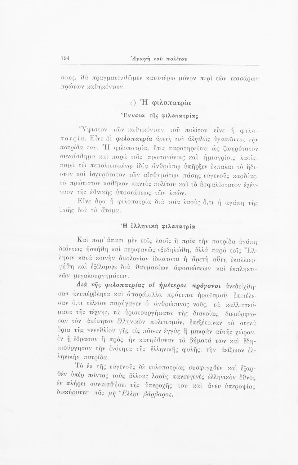 Σχολικό εγχειρίδιο Αγωγής του Πολίτη που αποσκοπεί όχι μόνο στην "μετάδοση στοιχειωδών γνώσεων δικαίου και πολιτικής οικονομίας αλλά κυρίως στην εθνοπρεπής πολιτική, κοινωνική και ηθική διάπλαση της ελληνικής νεολαίας" σύμφωνα με τα πρότυπα του καθεστώτος της 4ης Αυγούστου. Τις πρώτες σελίδες του βιβλίου κοσμούν φωτογραφίες του Γεωργίου του Β΄ και του Ιωάννη Μεταξά που φέρει τον τίτλο του "αρχηγού της εθνικής κυβερνήσεως και του γενικού επιθεωρητή της Ε.Ο.Ν". Ο συγγραφέας ήταν καθηγητής της Ιστορίας στο Πανεπιστήμιο Αθηνών.
