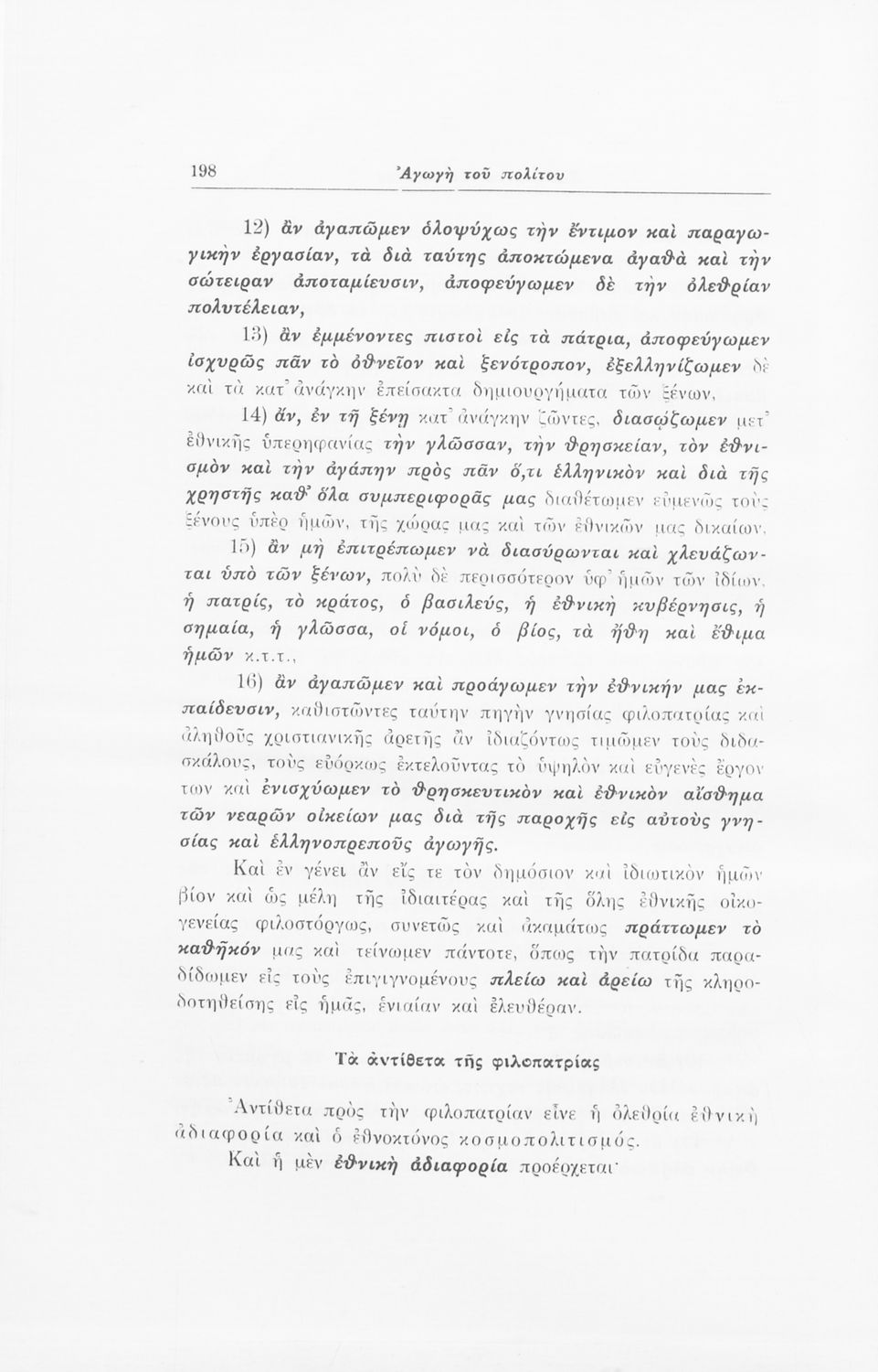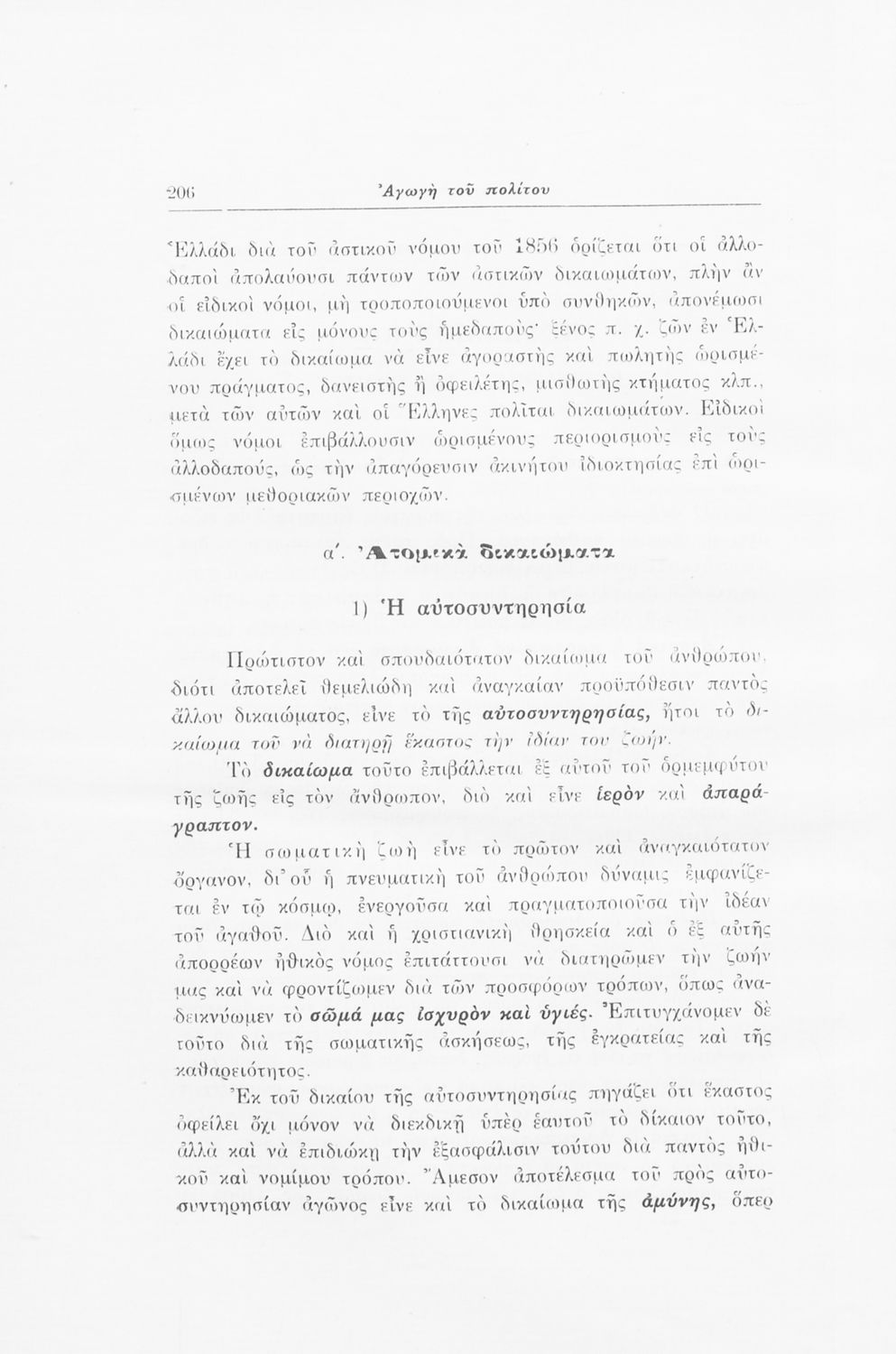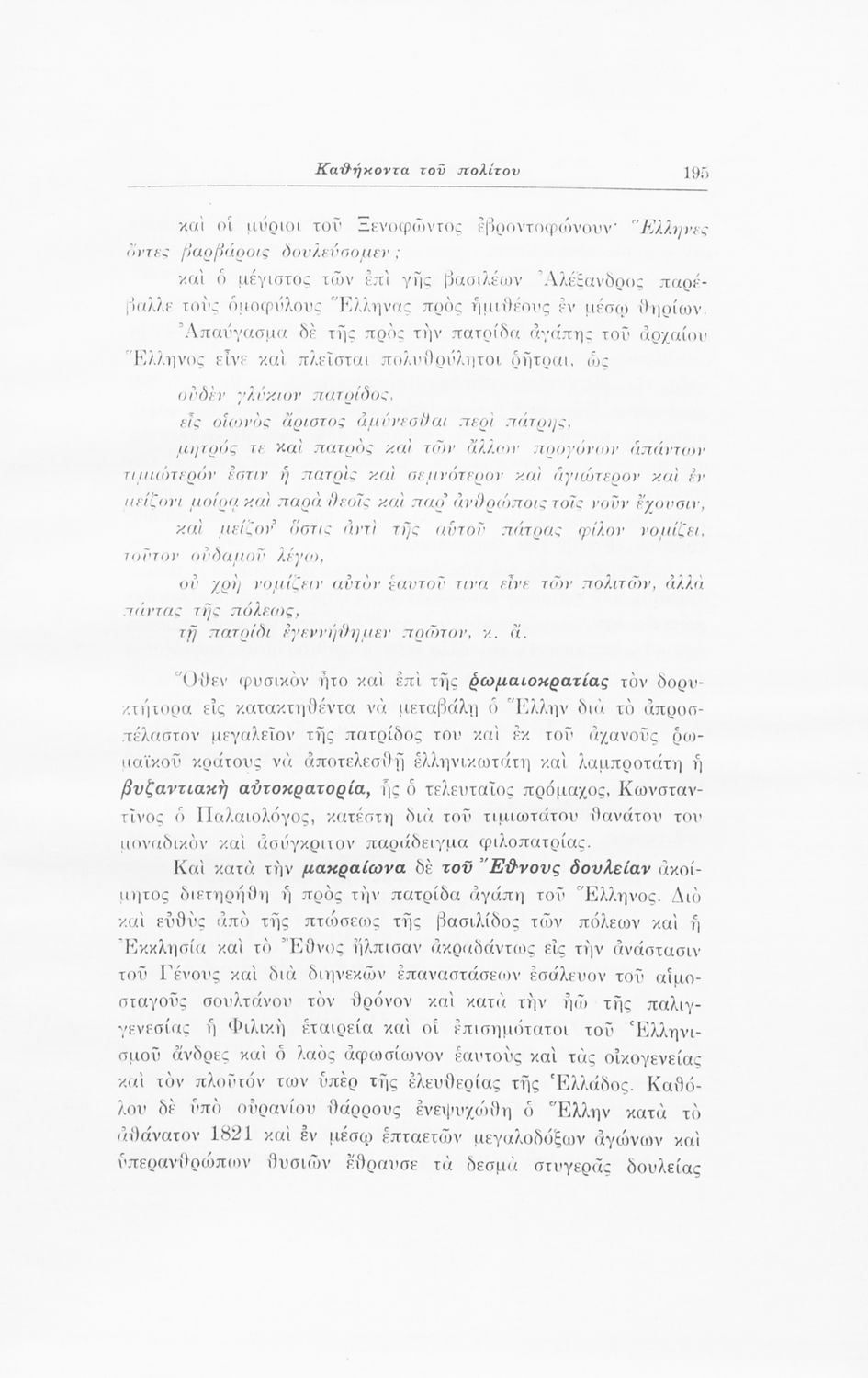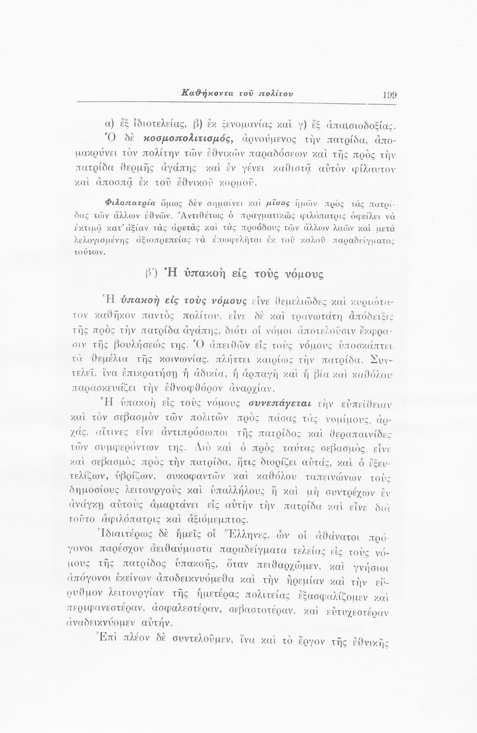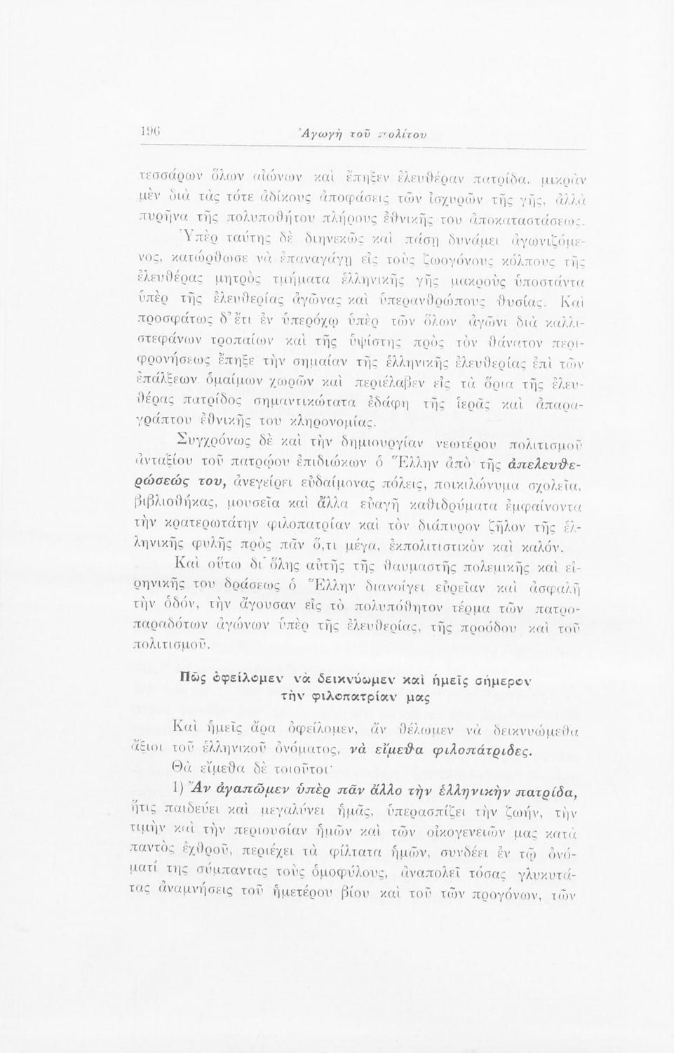 Σχολικό εγχειρίδιο Αγωγής του Πολίτη που αποσκοπεί όχι μόνο στην "μετάδοση στοιχειωδών γνώσεων δικαίου και πολιτικής οικονομίας αλλά κυρίως στην εθνοπρεπής πολιτική, κοινωνική και ηθική διάπλαση της ελληνικής νεολαίας" σύμφωνα με τα πρότυπα του καθεστώτος της 4ης Αυγούστου. Τις πρώτες σελίδες του βιβλίου κοσμούν φωτογραφίες του Γεωργίου του Β΄ και του Ιωάννη Μεταξά που φέρει τον τίτλο του "αρχηγού της εθνικής κυβερνήσεως και του γενικού επιθεωρητή της Ε.Ο.Ν". Ο συγγραφέας ήταν καθηγητής της Ιστορίας στο Πανεπιστήμιο Αθηνών.