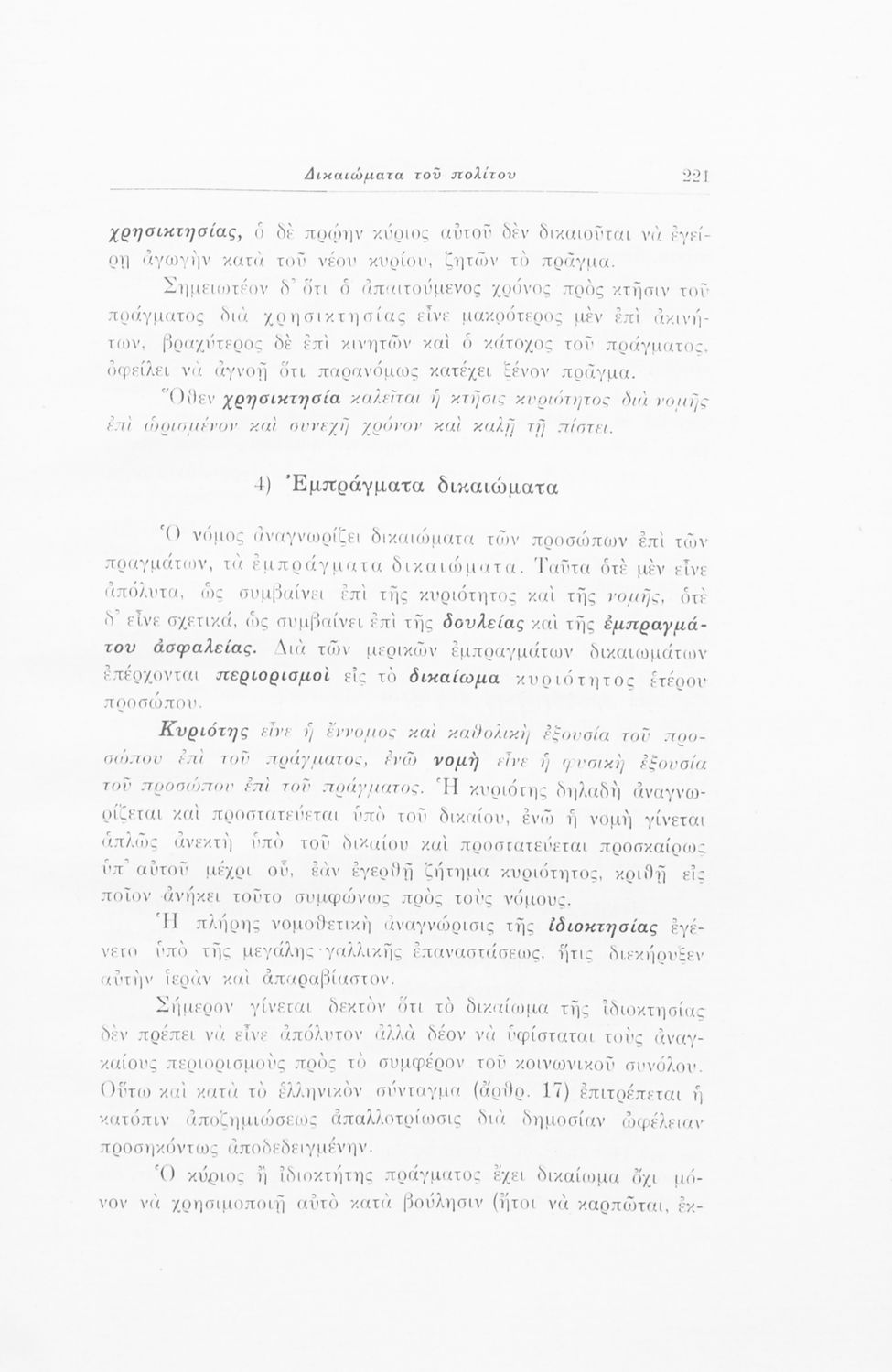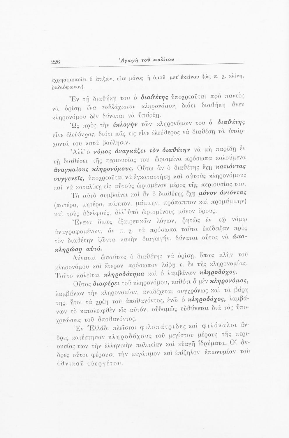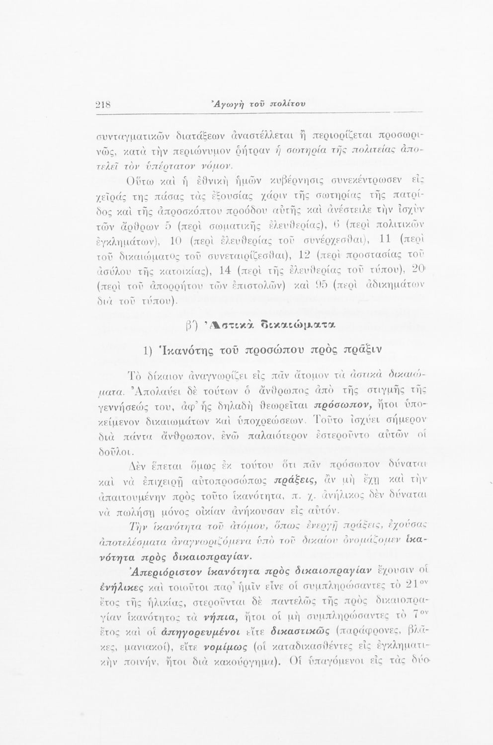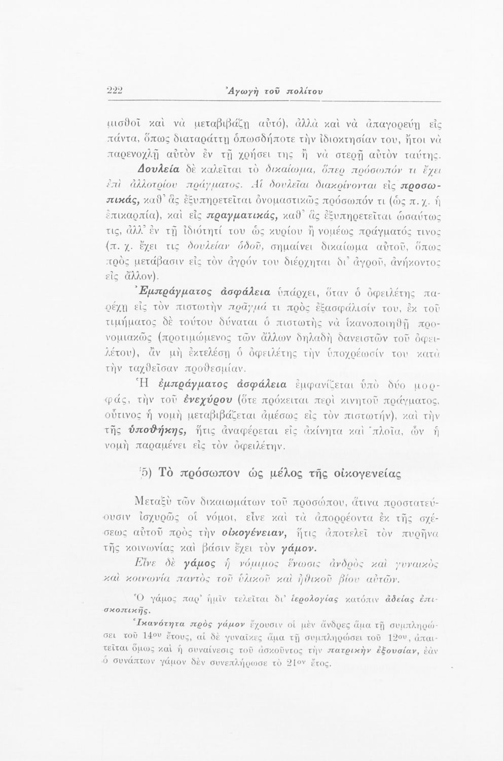 Σχολικό εγχειρίδιο Αγωγής του Πολίτη που αποσκοπεί όχι μόνο στην "μετάδοση στοιχειωδών γνώσεων δικαίου και πολιτικής οικονομίας αλλά κυρίως στην εθνοπρεπής πολιτική, κοινωνική και ηθική διάπλαση της ελληνικής νεολαίας" σύμφωνα με τα πρότυπα του καθεστώτος της 4ης Αυγούστου. Τις πρώτες σελίδες του βιβλίου κοσμούν φωτογραφίες του Γεωργίου του Β΄ και του Ιωάννη Μεταξά που φέρει τον τίτλο του "αρχηγού της εθνικής κυβερνήσεως και του γενικού επιθεωρητή της Ε.Ο.Ν". Ο συγγραφέας ήταν καθηγητής της Ιστορίας στο Πανεπιστήμιο Αθηνών.