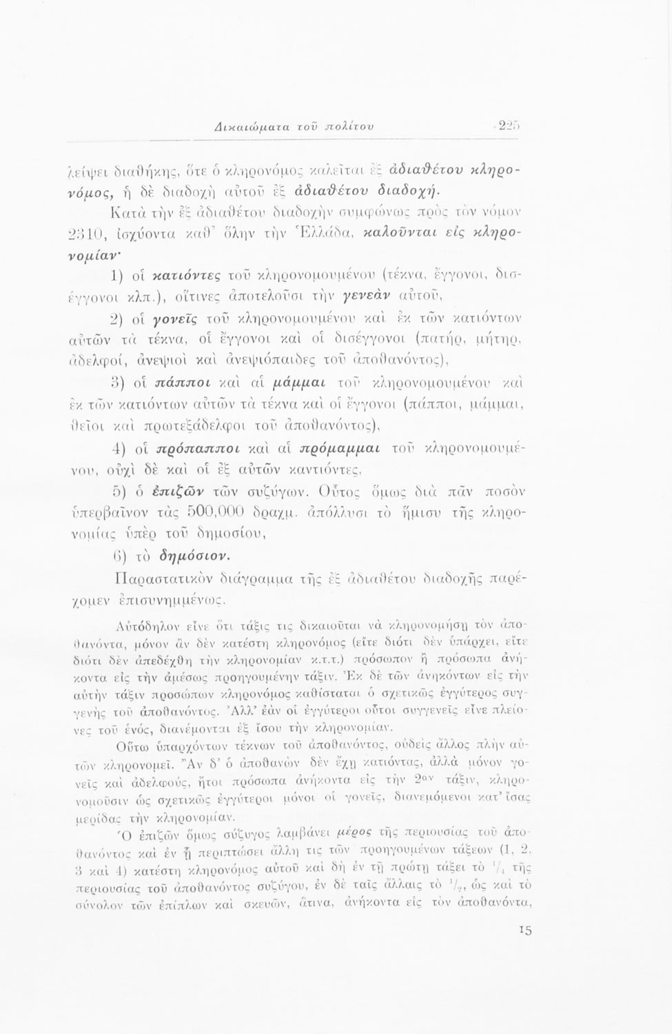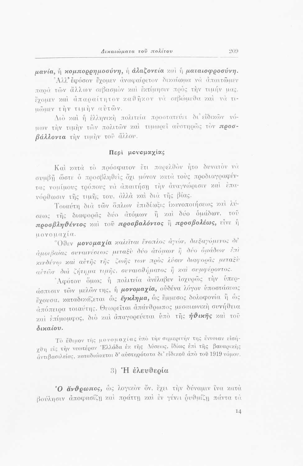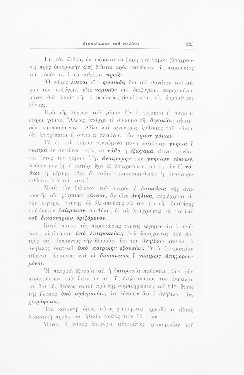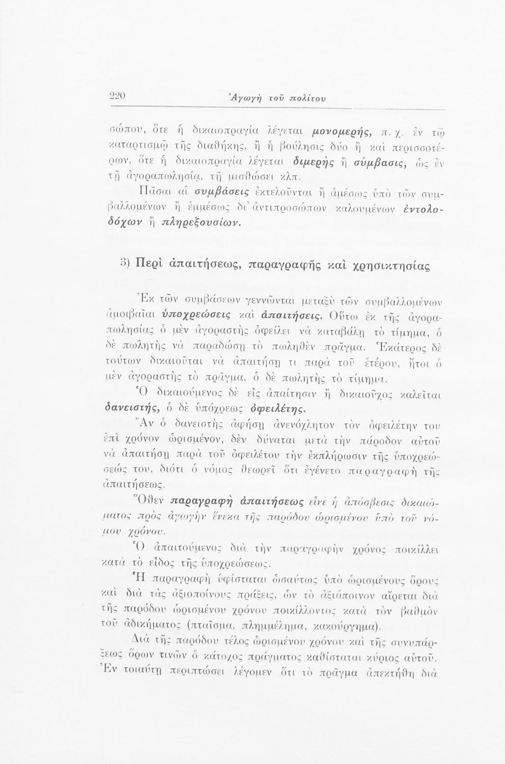 Σχολικό εγχειρίδιο Αγωγής του Πολίτη που αποσκοπεί όχι μόνο στην "μετάδοση στοιχειωδών γνώσεων δικαίου και πολιτικής οικονομίας αλλά κυρίως στην εθνοπρεπής πολιτική, κοινωνική και ηθική διάπλαση της ελληνικής νεολαίας" σύμφωνα με τα πρότυπα του καθεστώτος της 4ης Αυγούστου. Τις πρώτες σελίδες του βιβλίου κοσμούν φωτογραφίες του Γεωργίου του Β΄ και του Ιωάννη Μεταξά που φέρει τον τίτλο του "αρχηγού της εθνικής κυβερνήσεως και του γενικού επιθεωρητή της Ε.Ο.Ν". Ο συγγραφέας ήταν καθηγητής της Ιστορίας στο Πανεπιστήμιο Αθηνών.