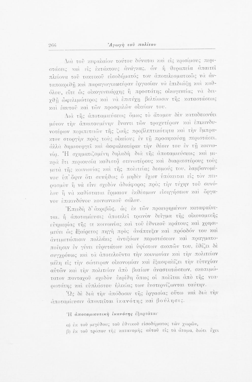 Σχολικό εγχειρίδιο Αγωγής του Πολίτη που αποσκοπεί όχι μόνο στην "μετάδοση στοιχειωδών γνώσεων δικαίου και πολιτικής οικονομίας αλλά κυρίως στην εθνοπρεπής πολιτική, κοινωνική και ηθική διάπλαση της ελληνικής νεολαίας" σύμφωνα με τα πρότυπα του καθεστώτος της 4ης Αυγούστου. Τις πρώτες σελίδες του βιβλίου κοσμούν φωτογραφίες του Γεωργίου του Β΄ και του Ιωάννη Μεταξά που φέρει τον τίτλο του "αρχηγού της εθνικής κυβερνήσεως και του γενικού επιθεωρητή της Ε.Ο.Ν". Ο συγγραφέας ήταν καθηγητής της Ιστορίας στο Πανεπιστήμιο Αθηνών.