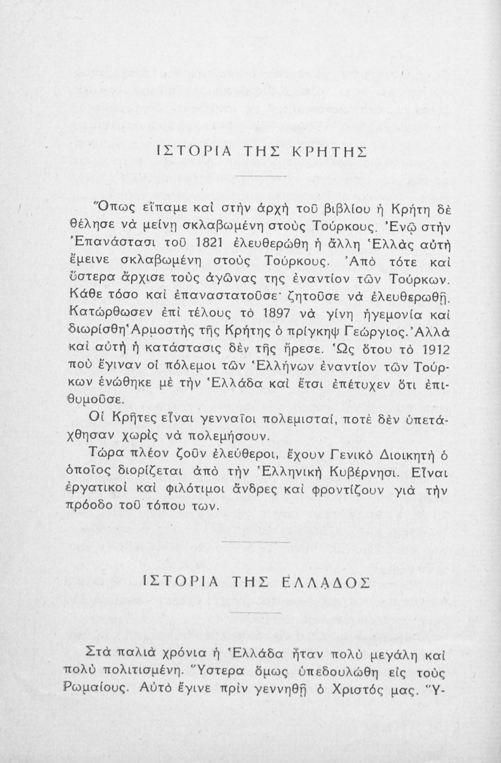 Σχολικό εγχειρίδιο Ιστορίας για τις Γ΄ και Δ΄ Δημοτικού και Παρθεναγωγείου που καλύπτει το διάστημα από τους προϊστορικούς χρόνους ως την κατάληψη της Ελλάδας από τους Ρωμαίους.