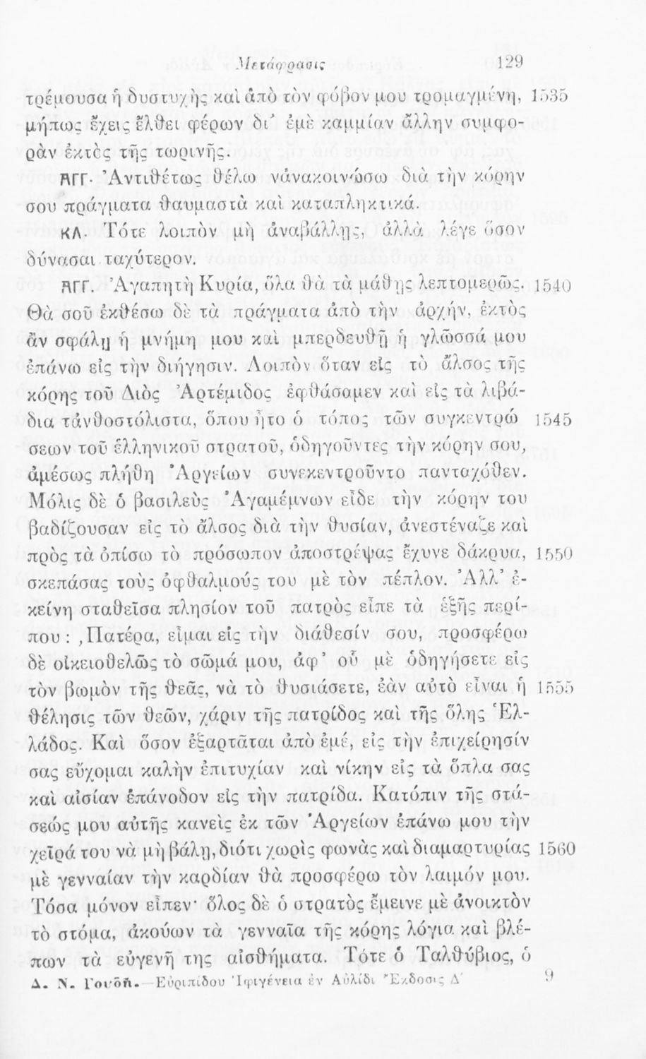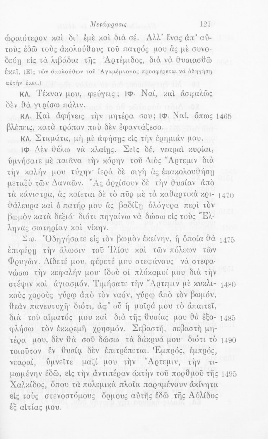 Ευριπίδου Ιφιγένεια εν Αυλίδι προς χρήσιν των μαθητών της Ε΄ τάξεως των Εξαταξίων Γυμνασίων