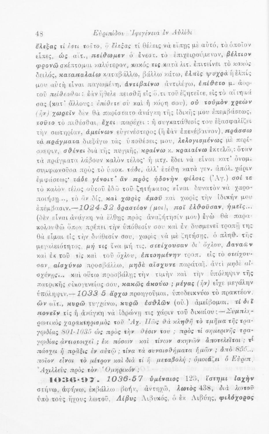 Μαθητικό βοήθημα Αρχαίων Ελληνικών για την Ε' Γυμνασίου που περιλαμβάνει μετάφραση, ερμηνευτικά, γραμματικά και συντακτικά σχόλια στην Ιφιγένεια η εν Αυλίδι.
