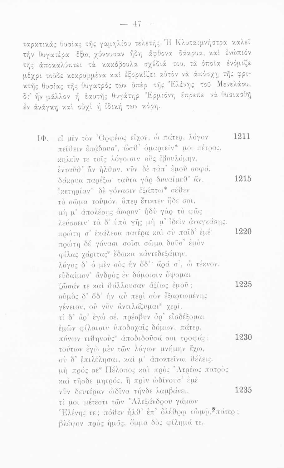 Σχολικό εγχειρίδιο Αρχαίων Ελληνικών Ε΄ Γυμνασίου που περιέχει εισαγωγή στο αρχαίο δράμα και στη ζωή και το έργο του Ευριπίδη, αποσπάσματα από την Ιφιγένεια η εν Αυλίδι και ερμηνευτικά σχόλια.
