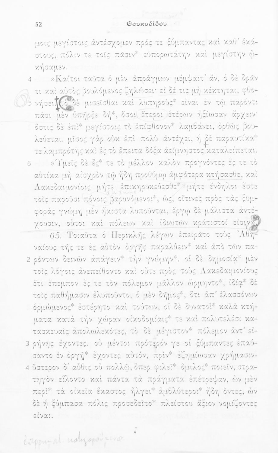 Σχολικό εγχειρίδιο Αρχαίων Ελληνικών Δ΄, Ε΄ και ΣΤ΄ Γυμνασίου που περιέχει αποσπάσματα από το έργο του Θουκυδίδη Ιστορία, ερμηνευτικά και πραγματολογικά σχόλια, και γραμματικές παρατηρήσεις.