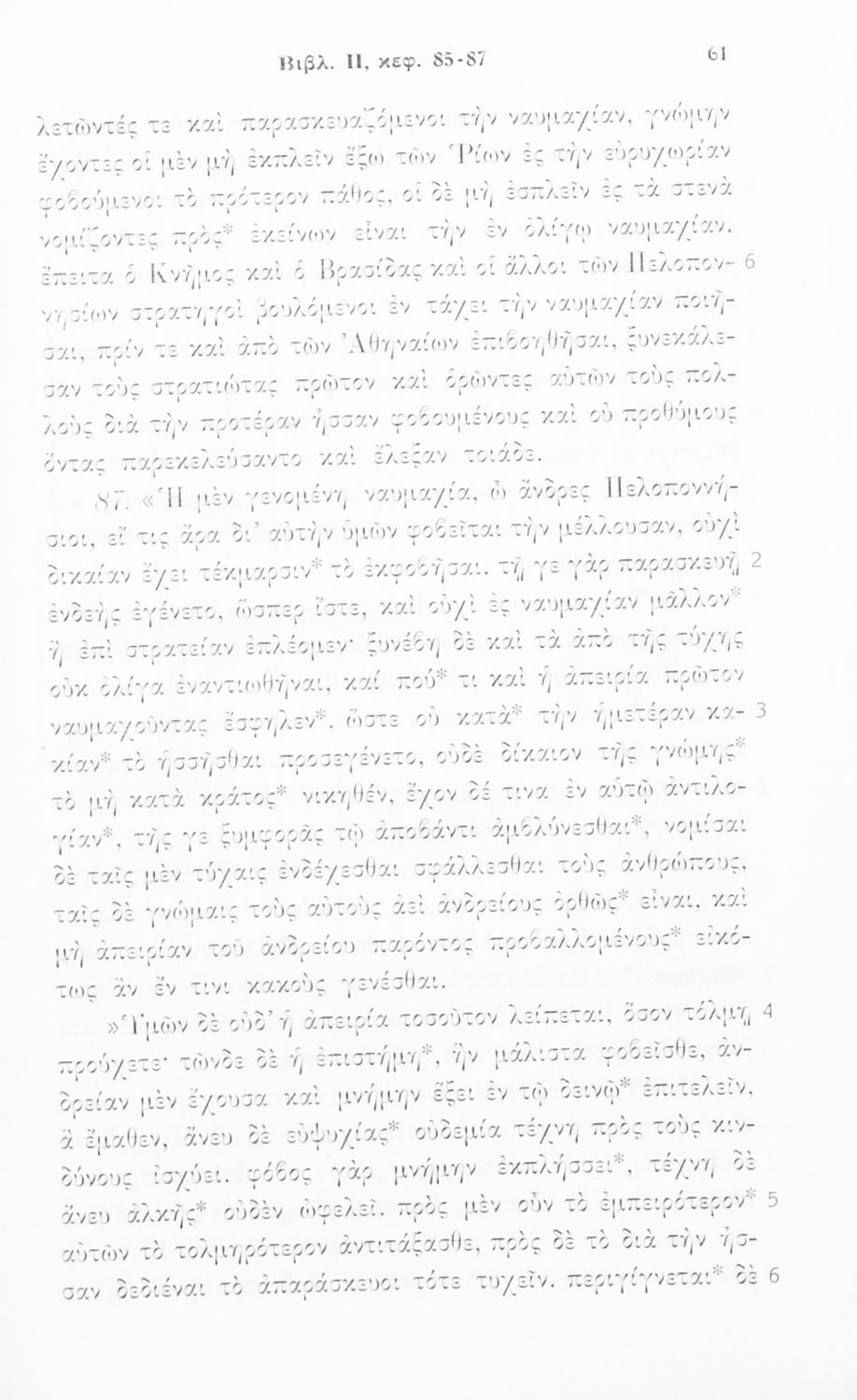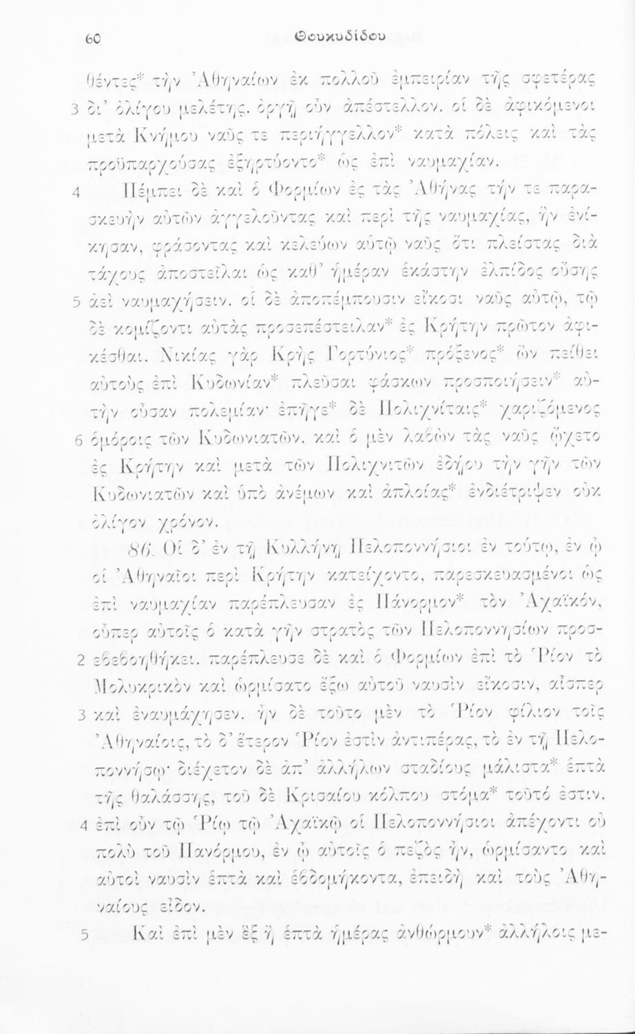 Σχολικό εγχειρίδιο Αρχαίων Ελληνικών Δ΄, Ε΄ και ΣΤ΄ Γυμνασίου που περιέχει αποσπάσματα από το έργο του Θουκυδίδη Ιστορία, ερμηνευτικά και πραγματολογικά σχόλια, και γραμματικές παρατηρήσεις.