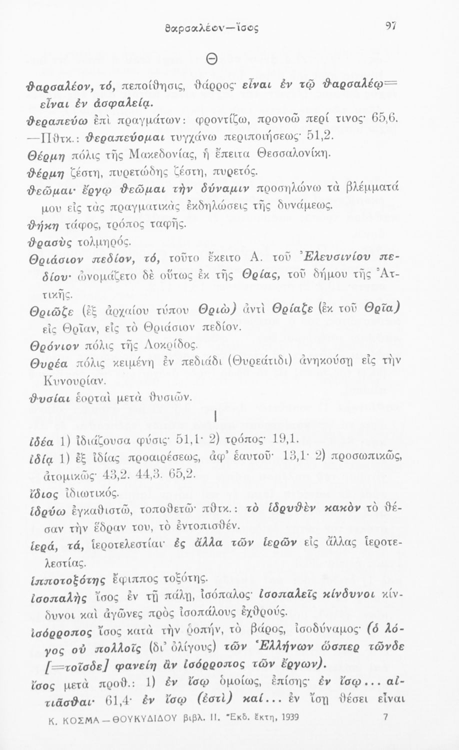 LDR 01478 2200217 4500 035 ## _a02-01180 040 ## _aΕλληνικό Λογοτεχνικό και Ιστορικό Αρχείο 041 ## _ael 100 ## _aΘουκυδίδης _aΚυριάκος Κοσμάς (σχόλια) 110 ## _a1939 ΘΟΥ 245 0# _aΘουκυδίδου το δεύτερον βιβλίον κατ' εκλογήν εκδοθέν δια την Δ΄, Ε΄ και ΣΤ΄ τάξιν των Εξαταξίων Γυμνασίων 250 ## _a6η Έκδοση 260 ## _aΑθήνα _bΙωάννης Δ. Κολλάρος και ΣΙΑ ΑΕ _c1939 300 ## _a132 _bΧάρτες (έγχρωμοι), Εικόνες (ασπρόμαυρες) 520 ## _aΣχολικό εγχειρίδιο Αρχαίων Ελληνικών για τις Δ΄, Ε΄ και ΣΤ΄ Γυμνασίου που περιλαμβάνει εισαγωγή στη ζωή και το έργο του Θουκυδίδη, αποσπάσματα από το δεύτερο βιβλίο της Ιστορίας, πραγματολογικές παρατηρήσεις και ετυμολογικό λεξιλόγιο. 521 ## _aΔ' Γυμνασίου / Ε' Γυμνασίου / ΣΤ' Γυμνασίου 522 ## _aΕλλάδα 546 ## _aΚαθαρεύουσα 563 ## _aΣκληρό Εξώφυλλο 583 ## _a37434/28-7-1930 650 #4 _aΑθήνα _aΠελοποννησιακός πόλεμος _aΣπάρτη
