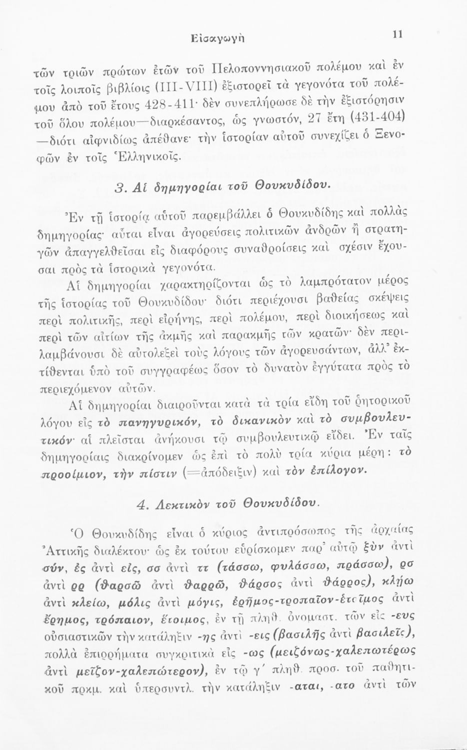Βαθμίδα εκπαίδευσης: Δευτεροβάθμια Τάξη: Δ' Γυμνασίου / Ε' Γυμνασίου / ΣΤ' Γυμνασίου Μάθημα: Αρχαία Ελληνικά Γλώσσα: Καθαρεύουσα Παρουσίαση περιεχομένου: Σχολικό εγχειρίδιο Αρχαίων Ελληνικών για τις Δ΄, Ε΄ και ΣΤ΄ Γυμνασίου που περιλαμβάνει εισαγωγή στη ζωή και το έργο του Θουκυδίδη, αποσπάσματα από το δεύτερο βιβλίο της Ιστορίας, πραγματολογικές παρατηρήσεις και ετυμολογικό λεξιλόγιο. |