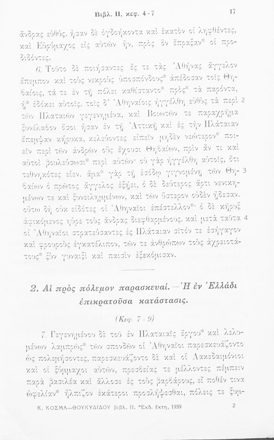 LDR 01478 2200217 4500 035 ## _a02-01180 040 ## _aΕλληνικό Λογοτεχνικό και Ιστορικό Αρχείο 041 ## _ael 100 ## _aΘουκυδίδης _aΚυριάκος Κοσμάς (σχόλια) 110 ## _a1939 ΘΟΥ 245 0# _aΘουκυδίδου το δεύτερον βιβλίον κατ' εκλογήν εκδοθέν δια την Δ΄, Ε΄ και ΣΤ΄ τάξιν των Εξαταξίων Γυμνασίων 250 ## _a6η Έκδοση 260 ## _aΑθήνα _bΙωάννης Δ. Κολλάρος και ΣΙΑ ΑΕ _c1939 300 ## _a132 _bΧάρτες (έγχρωμοι), Εικόνες (ασπρόμαυρες) 520 ## _aΣχολικό εγχειρίδιο Αρχαίων Ελληνικών για τις Δ΄, Ε΄ και ΣΤ΄ Γυμνασίου που περιλαμβάνει εισαγωγή στη ζωή και το έργο του Θουκυδίδη, αποσπάσματα από το δεύτερο βιβλίο της Ιστορίας, πραγματολογικές παρατηρήσεις και ετυμολογικό λεξιλόγιο. 521 ## _aΔ' Γυμνασίου / Ε' Γυμνασίου / ΣΤ' Γυμνασίου 522 ## _aΕλλάδα 546 ## _aΚαθαρεύουσα 563 ## _aΣκληρό Εξώφυλλο 583 ## _a37434/28-7-1930 650 #4 _aΑθήνα _aΠελοποννησιακός πόλεμος _aΣπάρτη