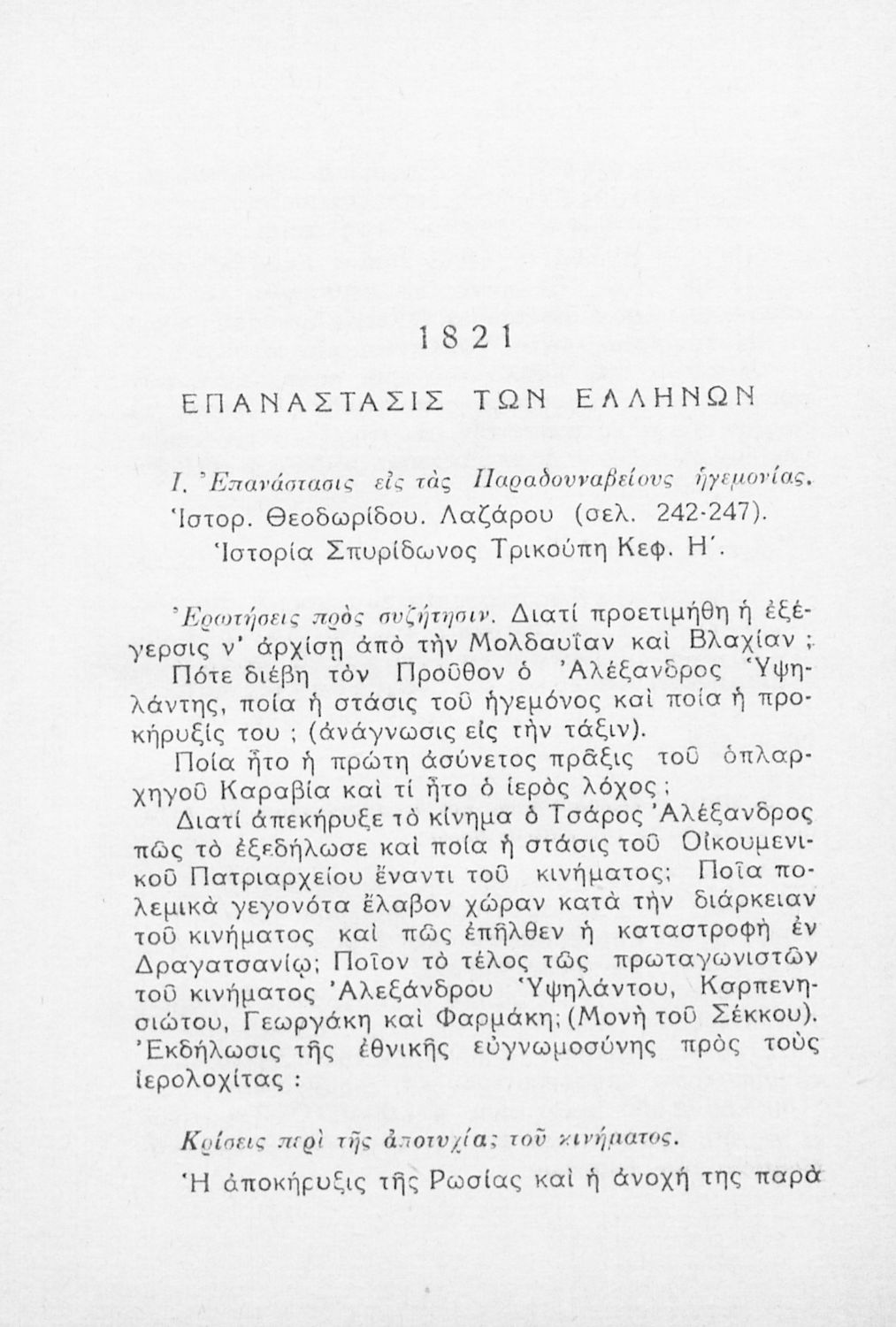 Μαθητικό βοήθημα Ιστορίας στους υποψηφίους σπουδαστές των ανωτέρων εκπαιδευτικών ιδρυμάτων που καλύπτει την περίοδο από την Ελληνική Επανάσταση ως τον Α΄ Παγκόσμιο Πόλεμο. Περιέχει και ερωτήσεις.