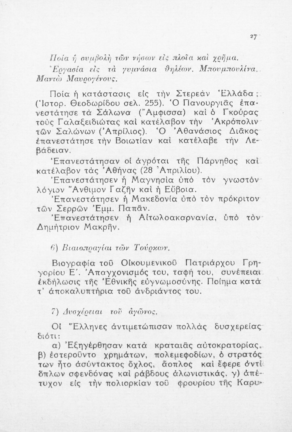 Μαθητικό βοήθημα της ΣΤ΄ Γυμνασίου για το μάθημα της Ιστορίας. Περιέχει περιλήψεις και ερμηνευτικά σχόλια για τα κεφάλαια της ιστορίας του σχολικού εγχειριδίου. Ο συγγραφέας ήταν Γυμνασιάρχης.