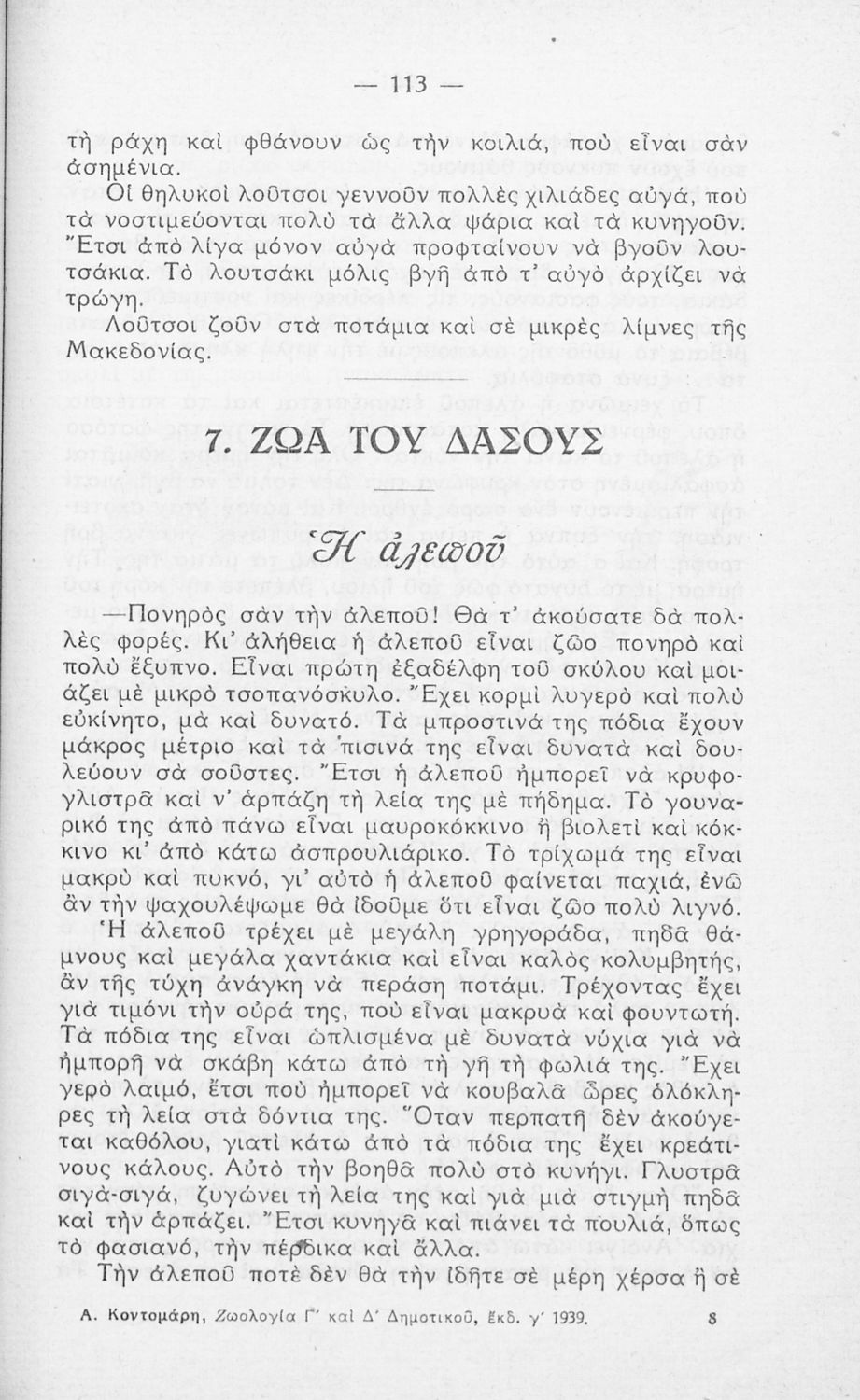 Μαθητικό βοήθημα Ζωολογίας για τις Γ΄ και Δ΄ Δημοτικού που αποτελείται από μικρά κεφάλαια τα οποία είναι αφιερωμένα στην περιγραφή ενός ζώου.
