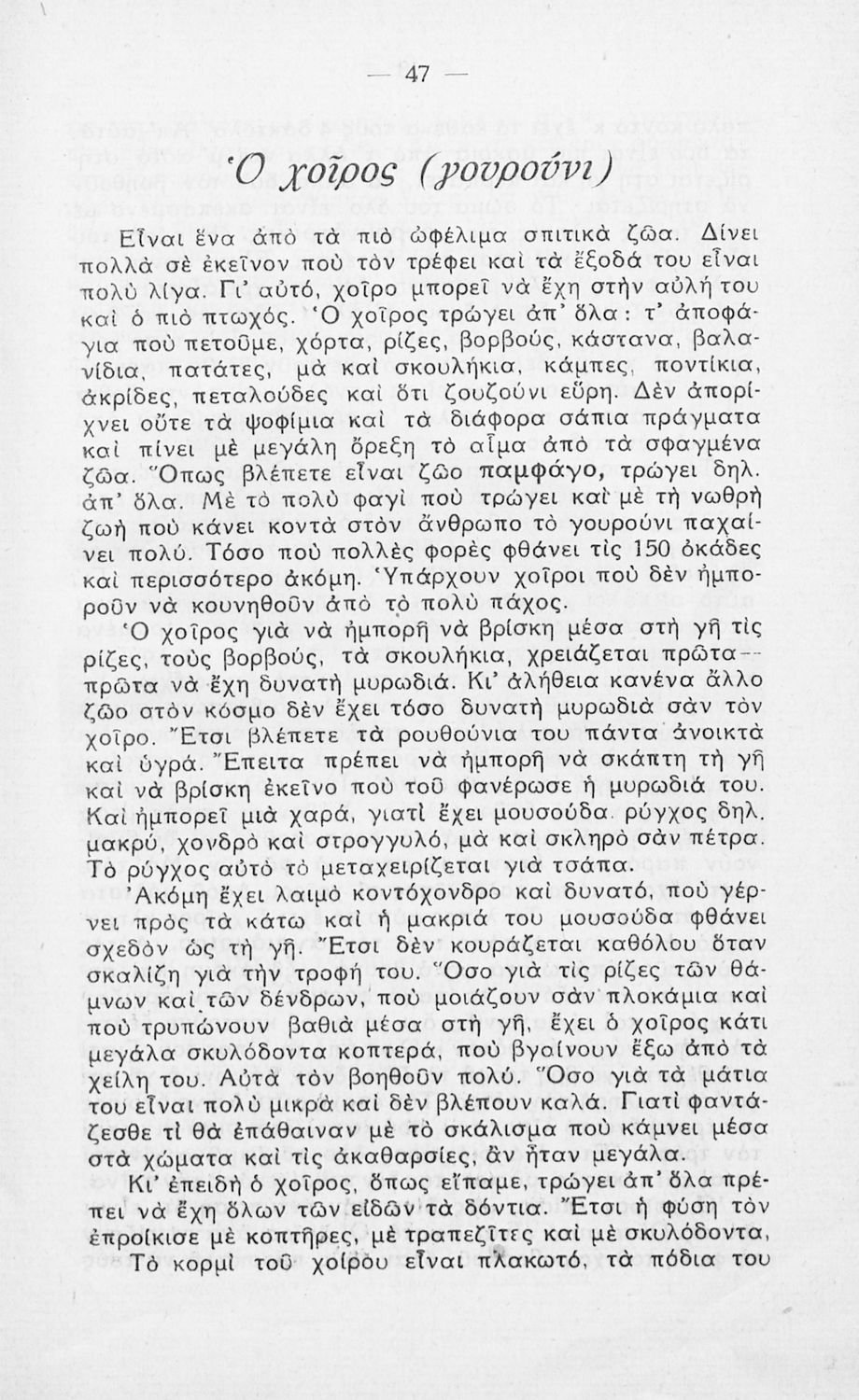 Μαθητικό βοήθημα Ζωολογίας για τις Γ΄ και Δ΄ Δημοτικού που αποτελείται από μικρά κεφάλαια τα οποία είναι αφιερωμένα στην περιγραφή ενός ζώου.