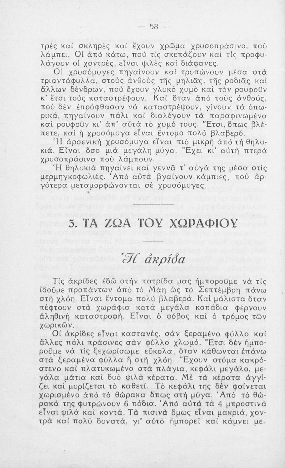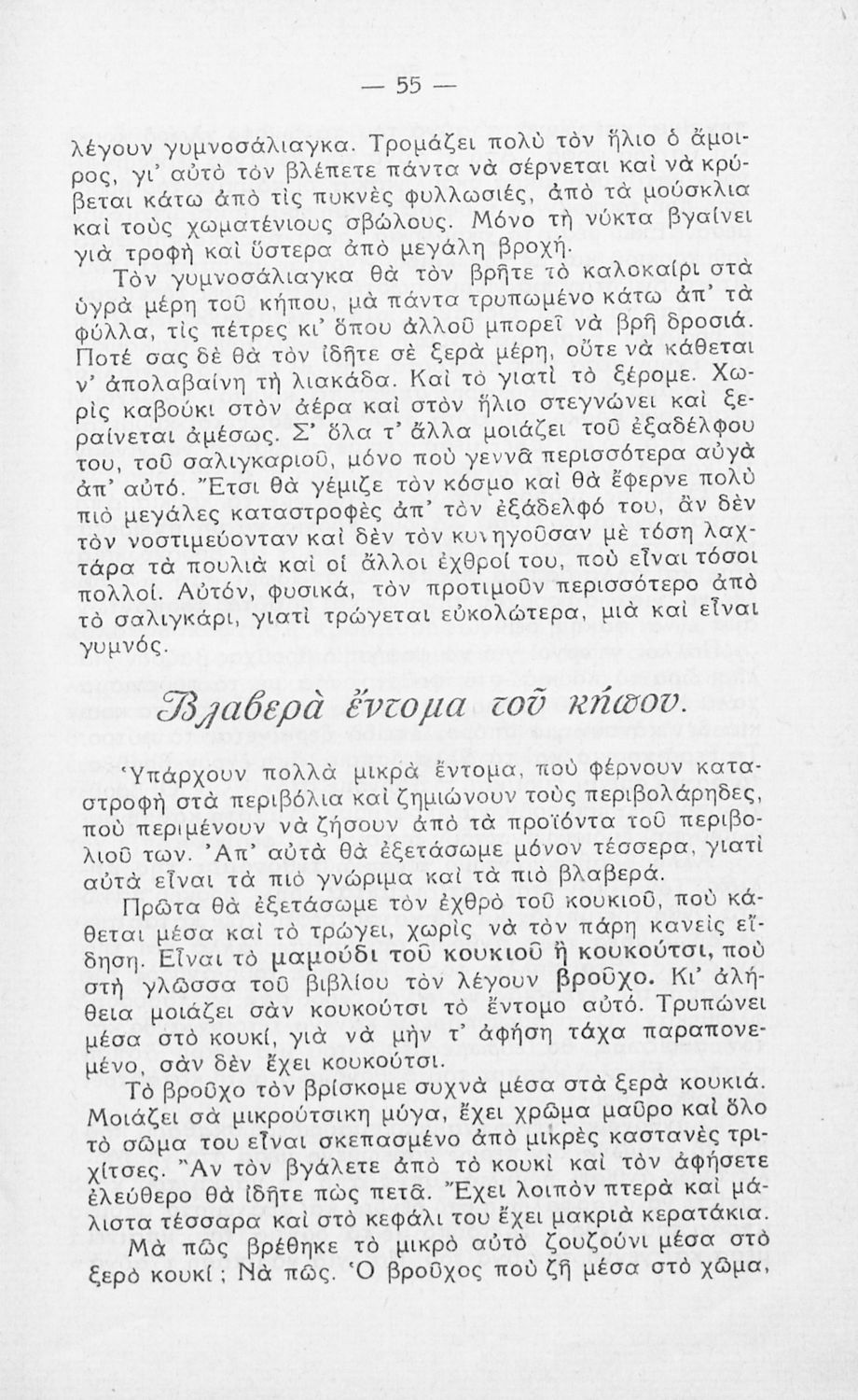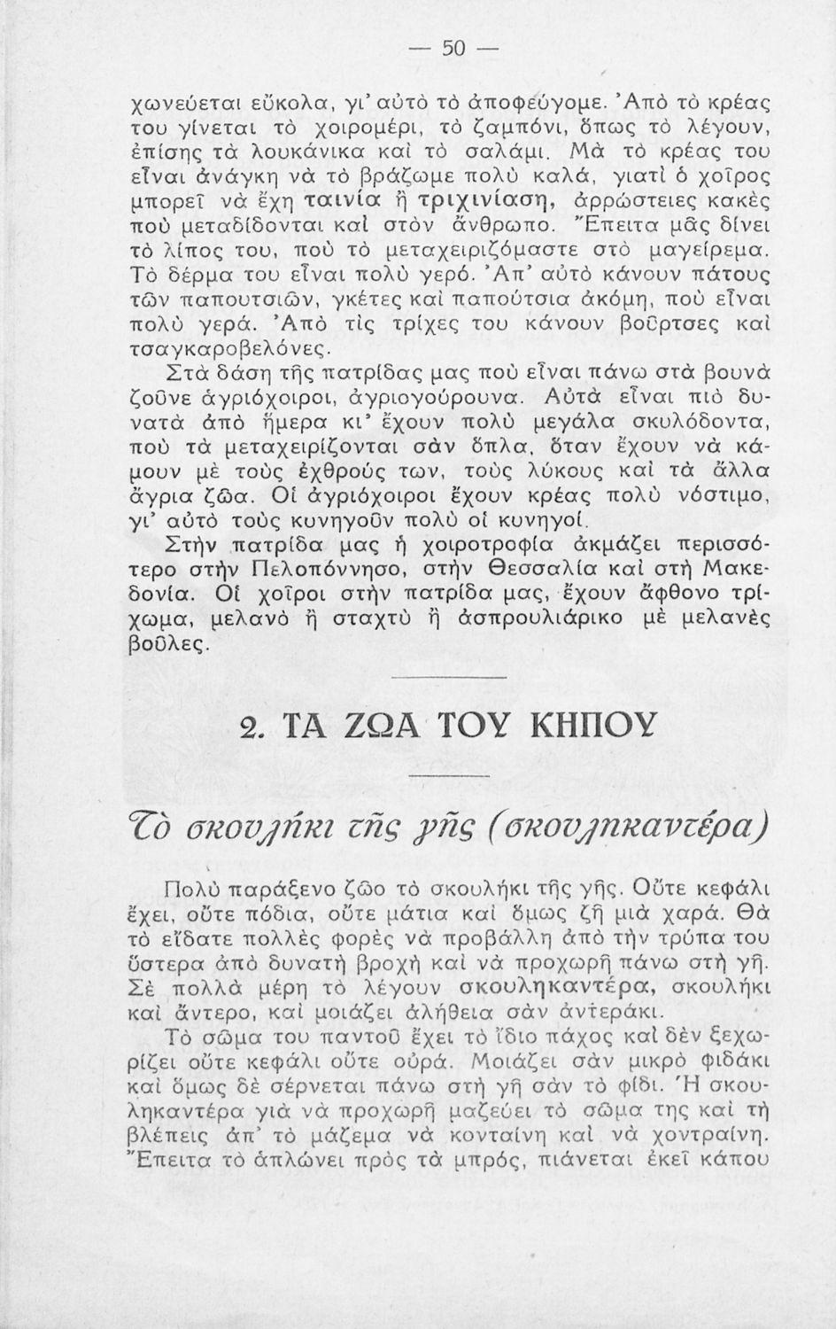 Σχολικό εγχειρίδιο Φυτολογίας και Ζωολογίας της Γ ΄ Δημοτικού το οποίο παρουσιάζει τα είδη των φυτών και ζώων του σπιτιού, του κήπου και του λιβαδιού.