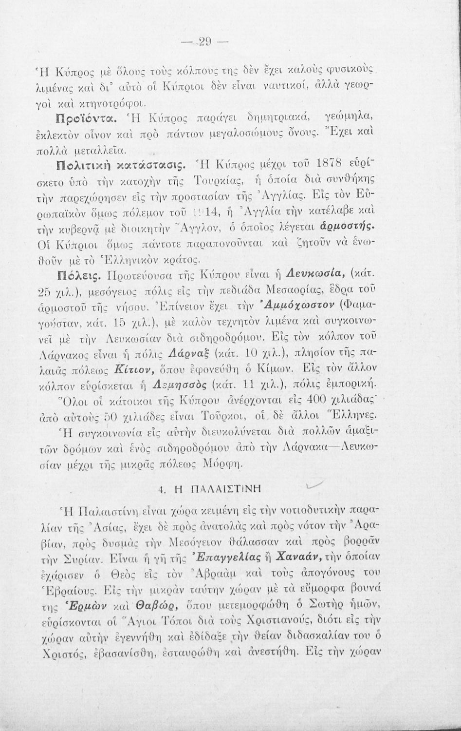 Πρόκειται για σχολικό εγχειρίδιο το οποίο προοριζόταν για τη διδασκαλία του μαθήματος της φυσικής και πολιτικής γεωγραφία της Ασίας, Αφρικής, Αμερικής και Αυστραλίας στην Α΄ τάξη των Ελληνικών Σχολείων. Φέρει ...