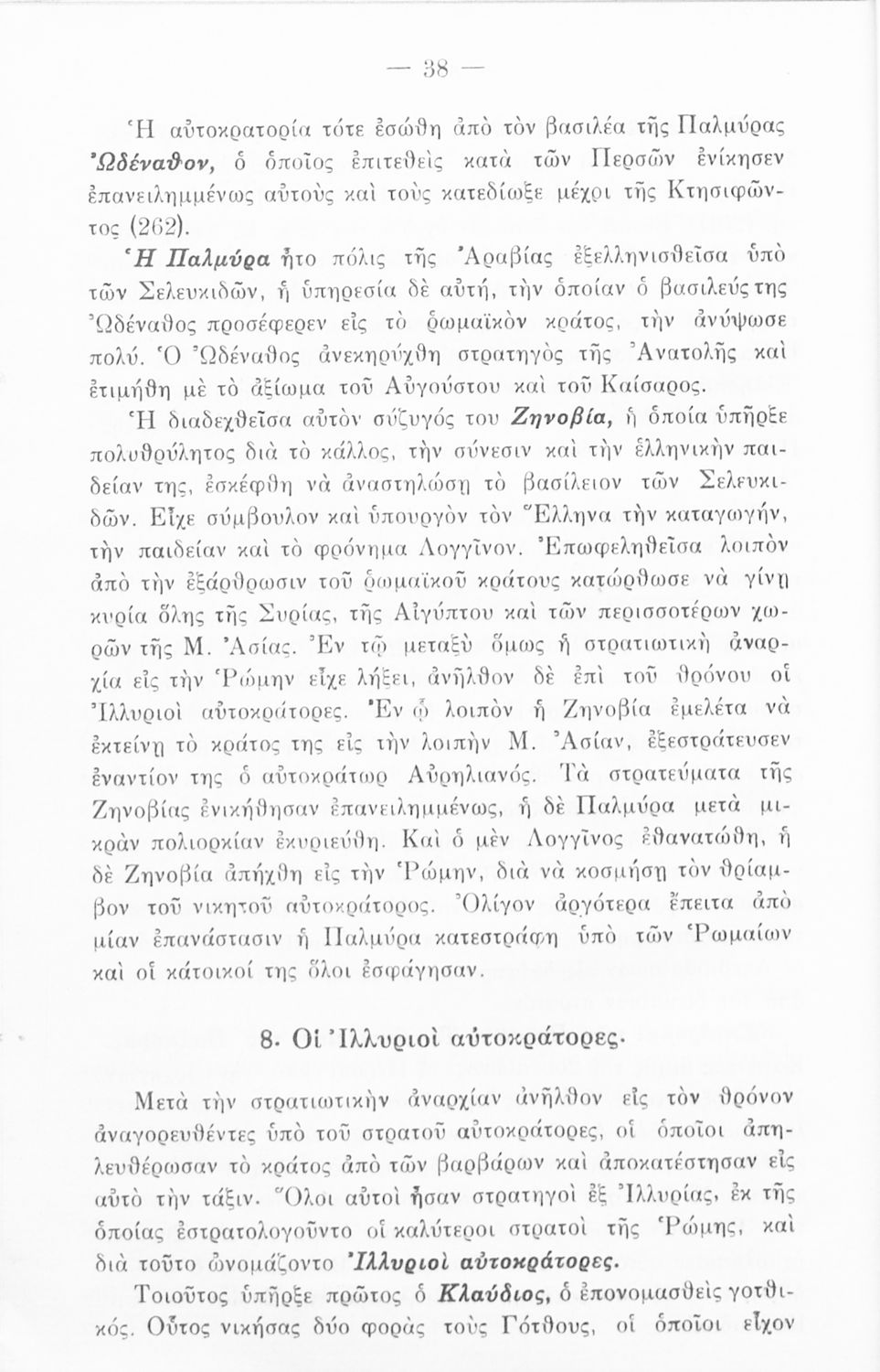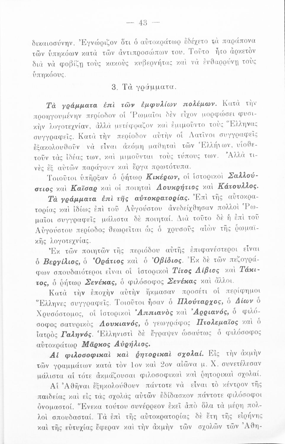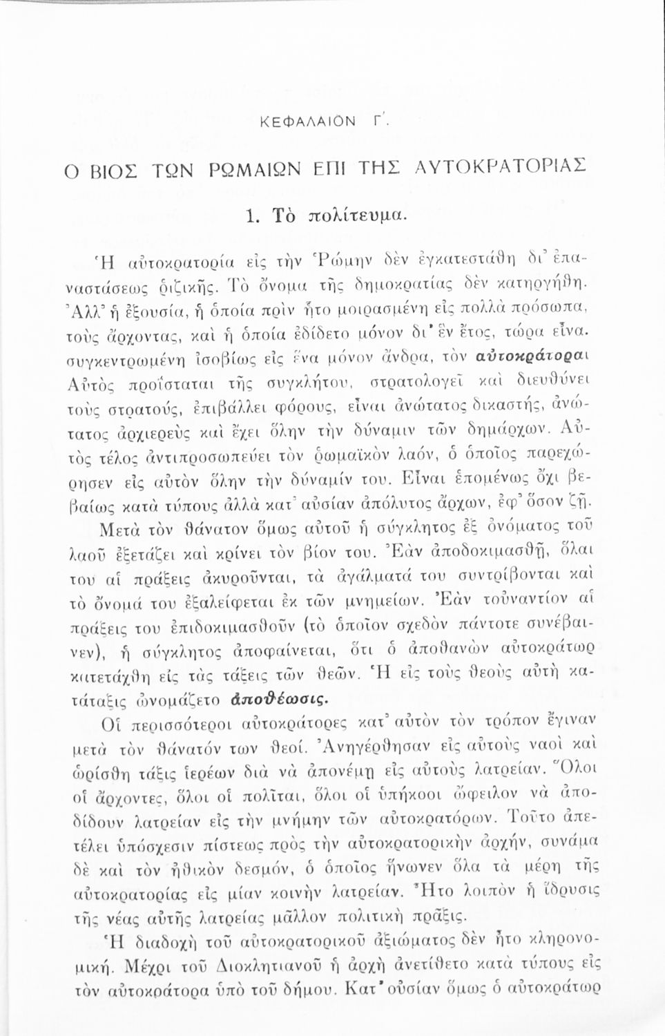 Βαθμίδα εκπαίδευσης: Δευτεροβάθμια Τάξη: Γ' Γυμνασίου Μάθημα: Ιστορία Γλώσσα: Καθαρεύουσα Παρουσίαση περιεχομένου: Σχολικό εγχειρίδιο Ιστορίας Γ΄ Γυμνασίου που καλύπτει το διάστημα από την αγροτική μεταρρύθμιση των Γράκχων ως τη δυναστεία των Ισαύρων και τον Καρλομάγνο. |