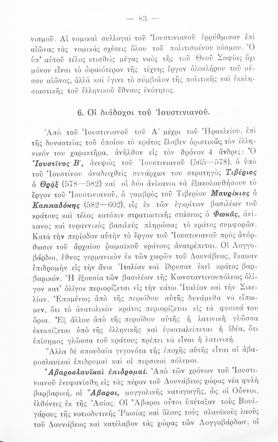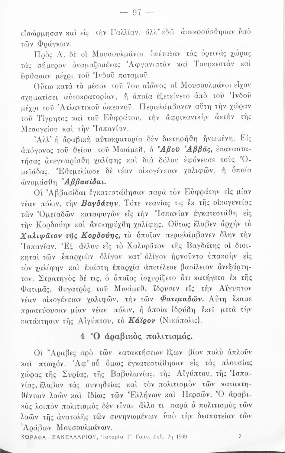 Βαθμίδα εκπαίδευσης: Δευτεροβάθμια Τάξη: Γ' Γυμνασίου Μάθημα: Ιστορία Γλώσσα: Καθαρεύουσα Παρουσίαση περιεχομένου: Σχολικό εγχειρίδιο Ιστορίας Γ΄ Γυμνασίου που καλύπτει το διάστημα από την αγροτική μεταρρύθμιση των Γράκχων ως τη δυναστεία των Ισαύρων και τον Καρλομάγνο. |