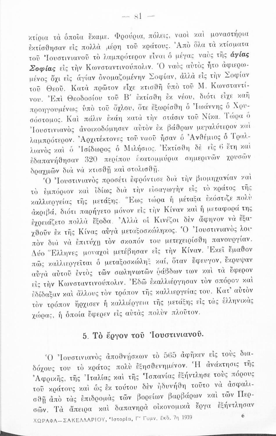 LDR 01419 2200217 4500 035 ## _a02-01204 040 ## _aΕλληνικό Λογοτεχνικό και Ιστορικό Αρχείο 041 ## _ael 100 ## _aΑντώνιος Χωραφάς _aΑντώνιος Σακελλαρίου 110 ## _a1939 ΧΩΡ ΙΣΤ 245 0# _aΙστορία ρωμαϊκή και βυζαντινή από της υποταγής της Ελλάδος εις τους Ρωμαίους μέχρι του 8ου αιώνος μ.Χ. Δια την Γ΄ τάξιν των Γυμνασίων 250 ## _a7η Έκδοση 260 ## _aΑθήνα _bΙωάννης Δ. Κολλάρος και ΣΙΑ ΑΕ _c1939 300 ## _a172 _bΕικόνες (ασπρόμαυρες), Σκίτσα (ασπρόμαυρα), Χάρτες (ασπρόμαυροι) 520 ## _aΣχολικό εγχειρίδιο Ιστορίας Γ΄ Γυμνασίου που καλύπτει το διάστημα από την αγροτική μεταρρύθμιση των Γράκχων ως τη δυναστεία των Ισαύρων και τον Καρλομάγνο. 521 ## _aΓ' Γυμνασίου 522 ## _aΕλλάδα 546 ## _aΚαθαρεύουσα 563 ## _aΣκληρό Εξώφυλλο 583 ## _a45411/29-8-1932 650 #4 _aΙουστινιανός _aΜέγας Κωνσταντίνος _aΡωμαίοι αυτοκράτορες