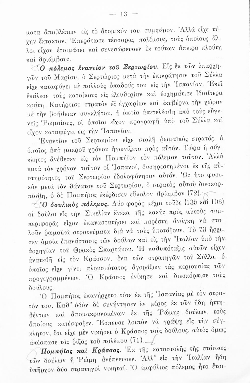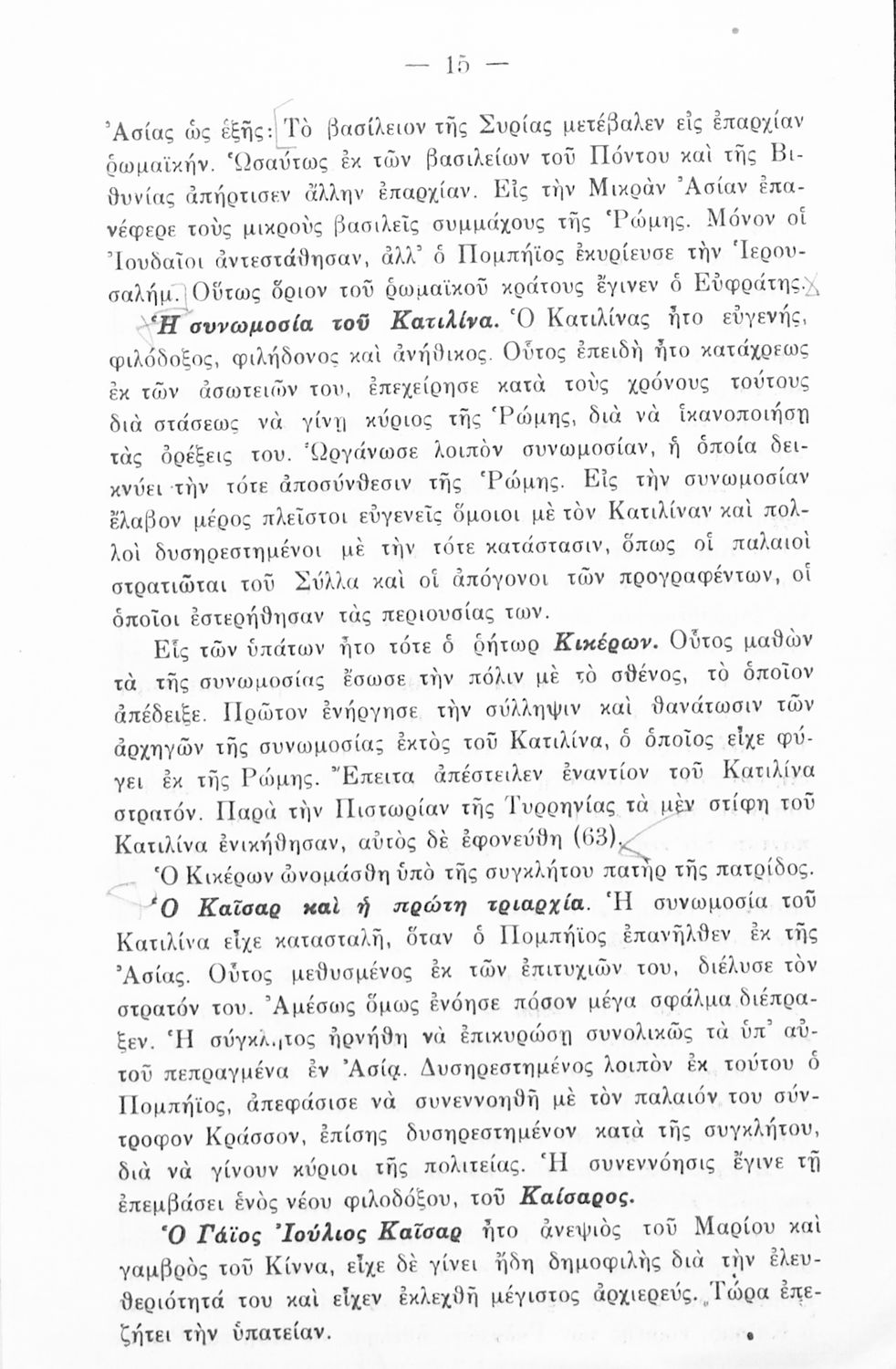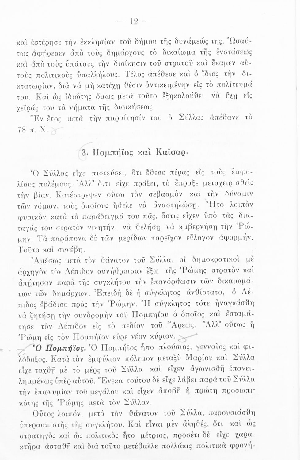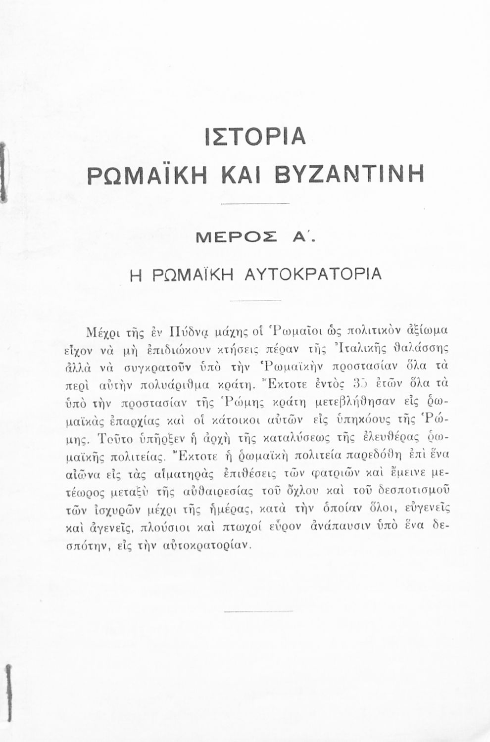 Βαθμίδα εκπαίδευσης: Δευτεροβάθμια Τάξη: Γ' Γυμνασίου Μάθημα: Ιστορία Γλώσσα: Καθαρεύουσα Παρουσίαση περιεχομένου: Σχολικό εγχειρίδιο Ιστορίας Γ΄ Γυμνασίου που καλύπτει το διάστημα από την αγροτική μεταρρύθμιση των Γράκχων ως τη δυναστεία των Ισαύρων και τον Καρλομάγνο. |