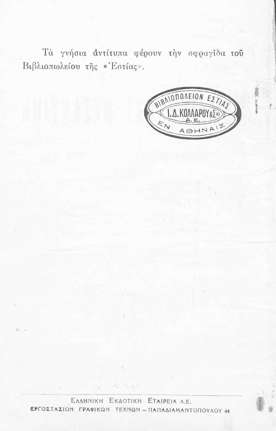 Εντοπισμός πρωτοτύπου: Ελληνικό Λογοτεχνικό και Ιστορικό Αρχείο Κωδικός βιβλιοθήκης: 1939 ΧΩΡ ΙΣΤ |