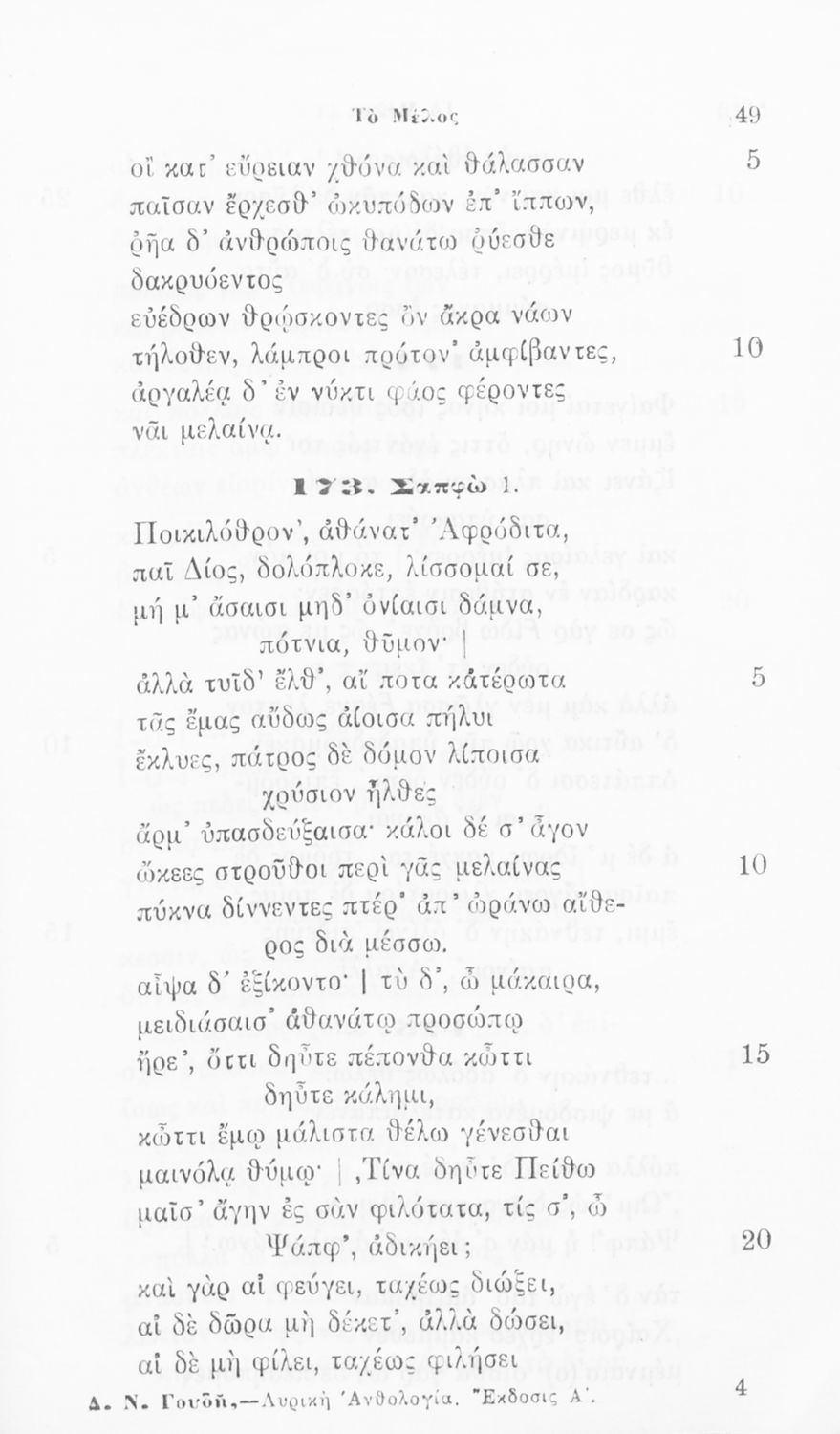 520 ## _aΜαθητικό βοήθημα Αρχαίων Ελληνικών Ε΄ Γυμνασίου που περιλαμβάνει ποιήματα, ύμνους και επιγράμματα αρχαίων Ελλήνων λυρικών.