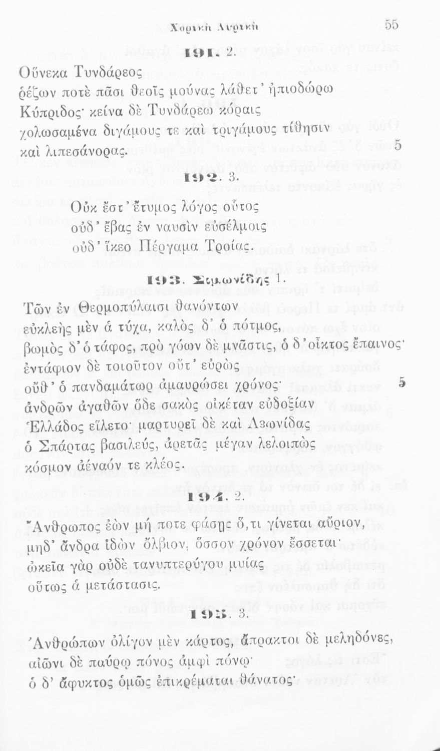 Μαθητικό βοήθημα Αρχαίων Ελληνικών Ε΄ Γυμνασίου που περιλαμβάνει ποιήματα, ύμνους και επιγράμματα αρχαίων Ελλήνων λυρικών.