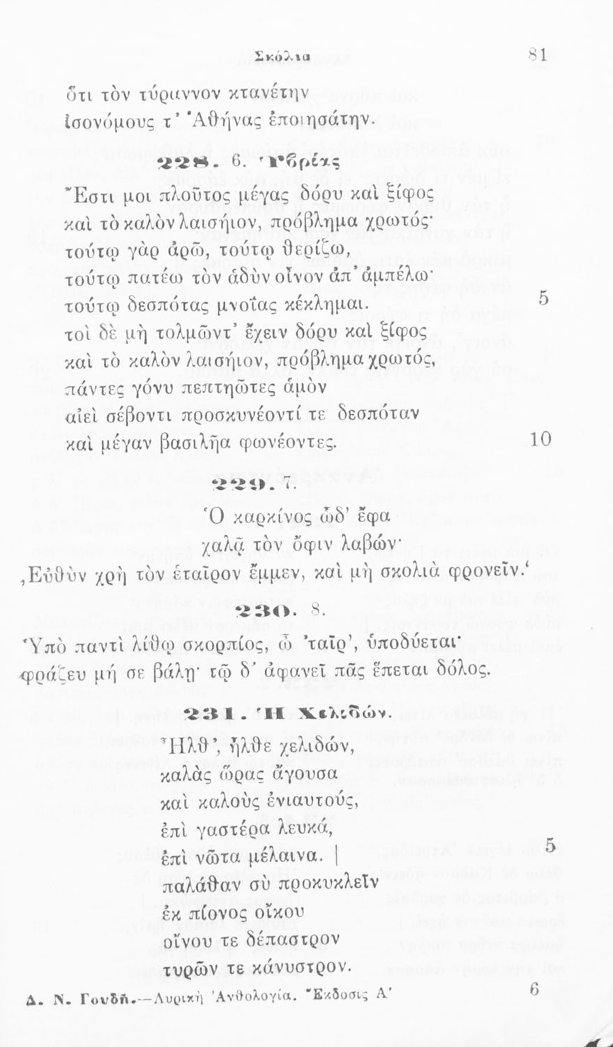 Ανθολογία αρχαίων Ελλήνων λυρικών προς χρήσιν της Ε΄ τάξεως των Εξαταξίων Γυμνασίων