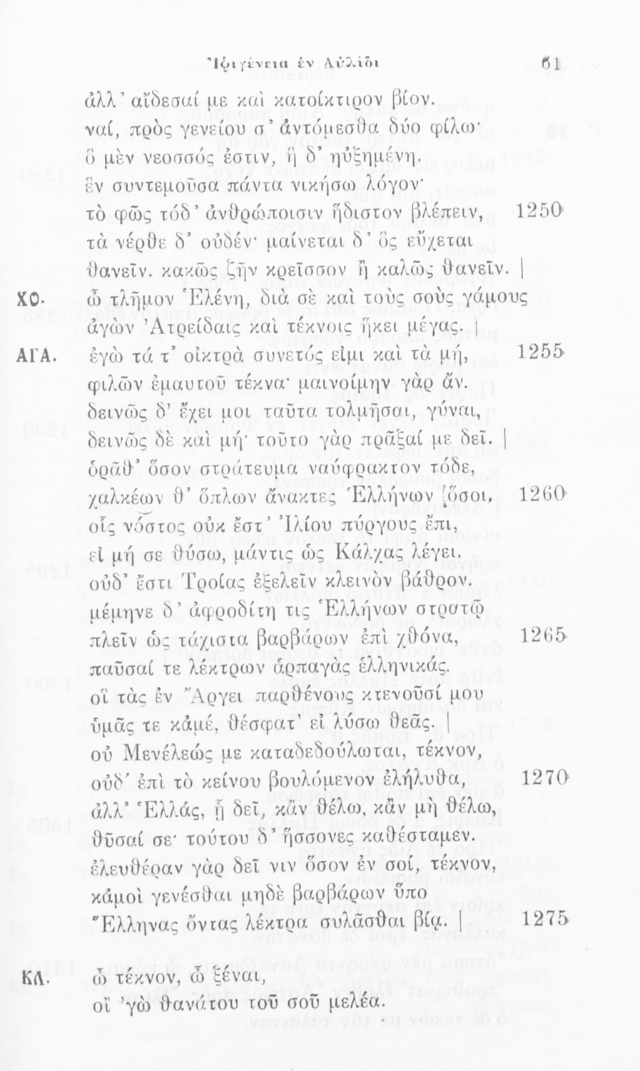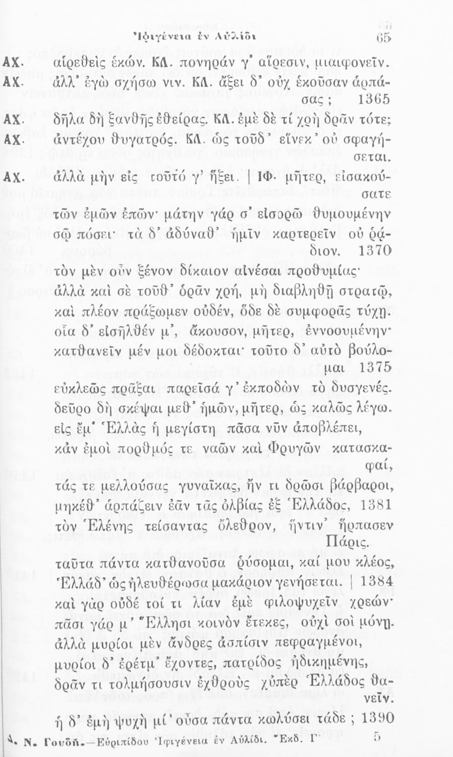 520 ## _aΠαιδαγωγικό βοήθημα Αρχαίων Ελληνικών Ε΄ Γυμνασίου που περιλαμβάνει ερμηνευτικές, γλωσσικές και πραγματολογικές παρατηρήσεις στην τραγωδία του Ευριπίδη Ιφιγένειας εν Αυλίδι
