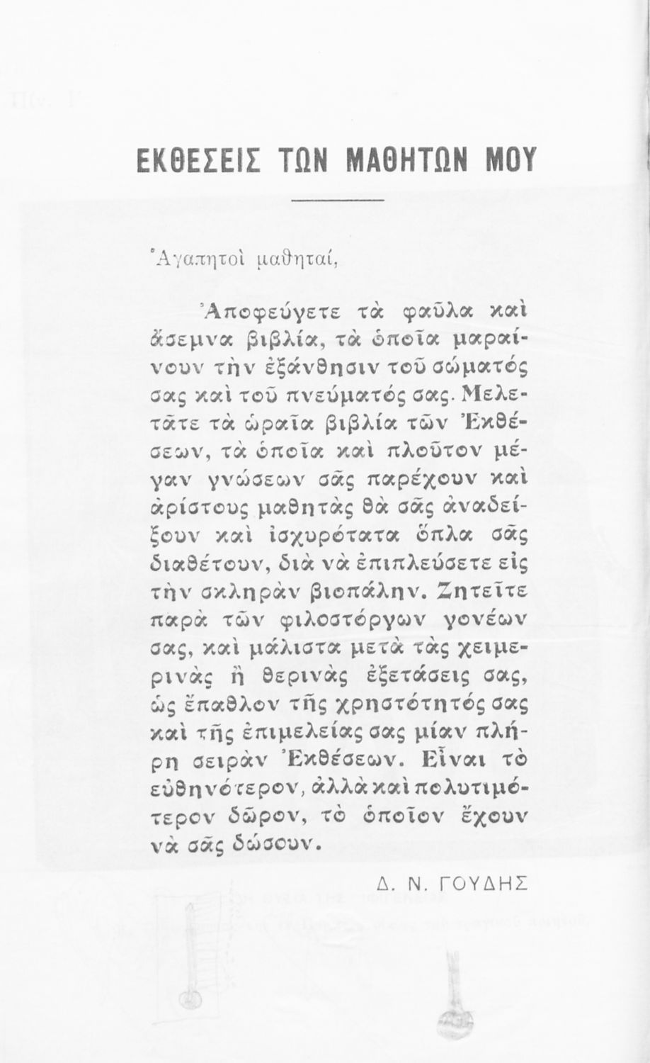Τάξη:  Α' Γυμνασίου / Πρακτικό Λύκειο / Ανώτερα Παρθεναγωγεία