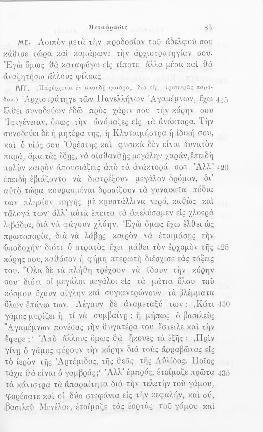 520 ## _aΠαιδαγωγικό βοήθημα Αρχαίων Ελληνικών Ε΄ Γυμνασίου που περιλαμβάνει ερμηνευτικές, γλωσσικές και πραγματολογικές παρατηρήσεις στην τραγωδία του Ευριπίδη Ιφιγένειας εν Αυλίδι
