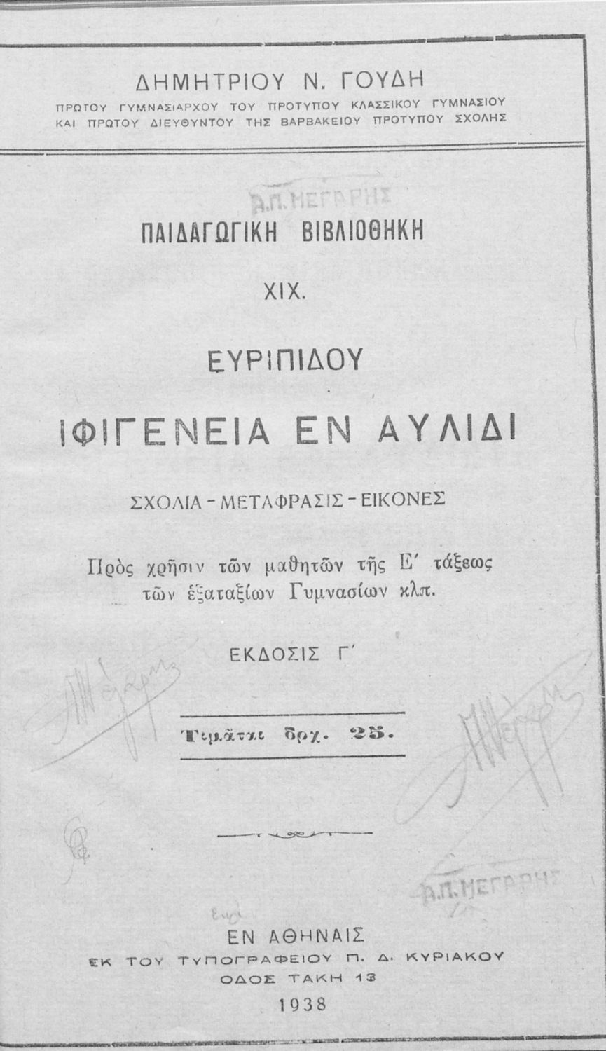 245 0# _aΕυριπίδου Ιφιγένεια εν Αυλίδι σχόλια, μετάφρασις, εικόνες προς χρήσιν των μαθητών της Ε΄ τάξεως των Εξατάξιων Γυμνασίων κλπ.