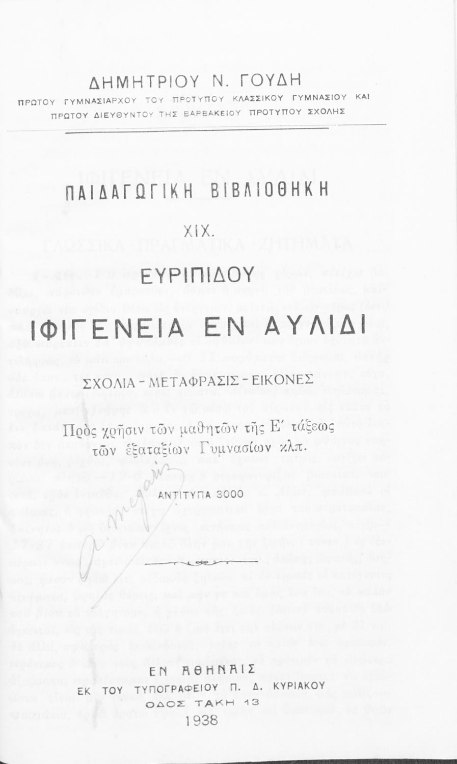 Εκδότης: Π. Δ. Κυριακού Έτος έκδοσης: 1938 Τόπος έκδοσης: Αθήνα Έκδοση: 3η |