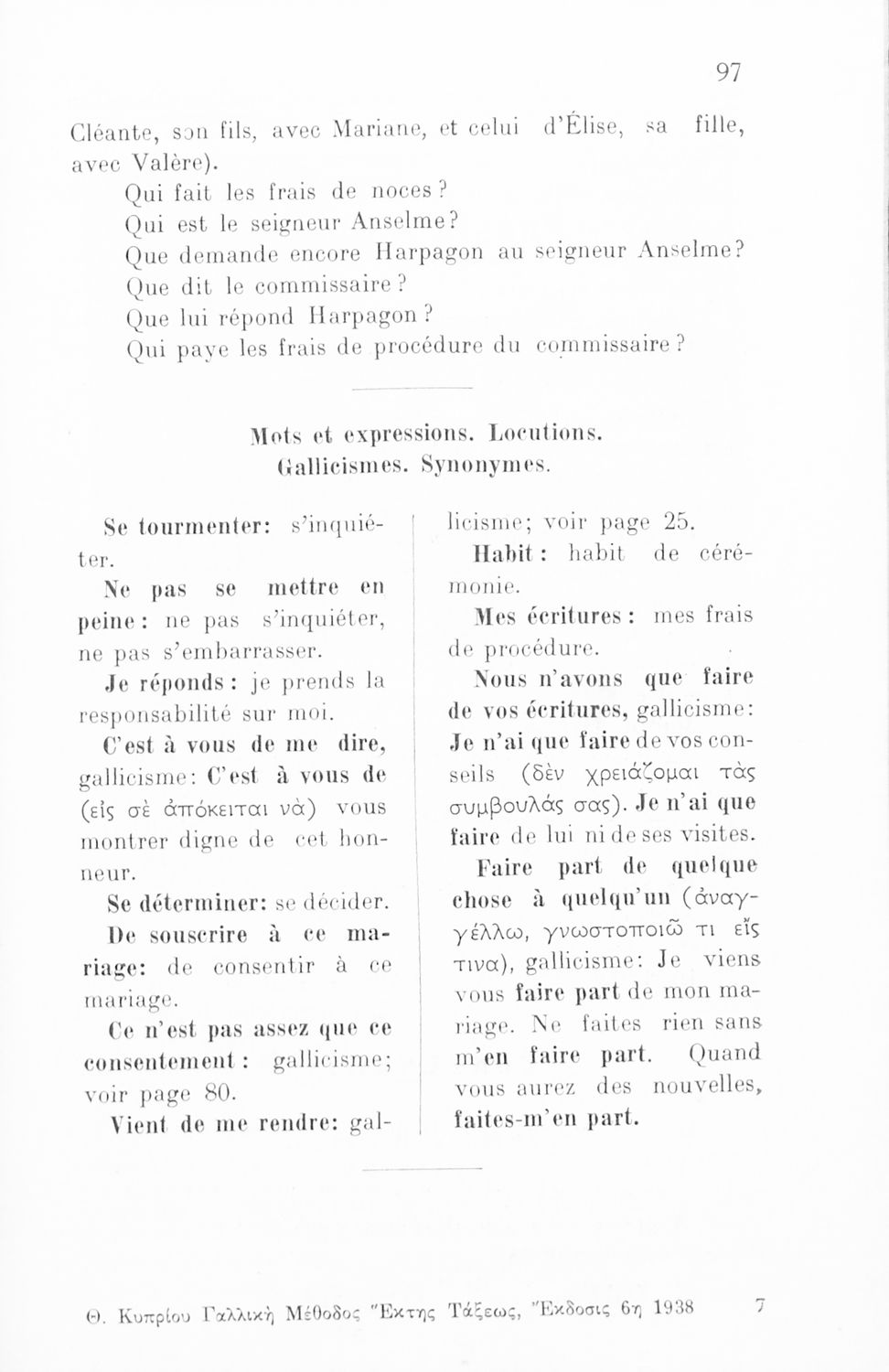 Τίτλος: Γαλλική μέθοδος της έκτης τάξεως εγκεκριμένη υπό του Υπουργείου της Παιδείας δια την έκτην τάξιν των Εξαταξίων Γυμνασίων και τας αντιστοίχους τάξεις των λοιπών Σχολείων της Μέσης Εκπαιδεύσεως