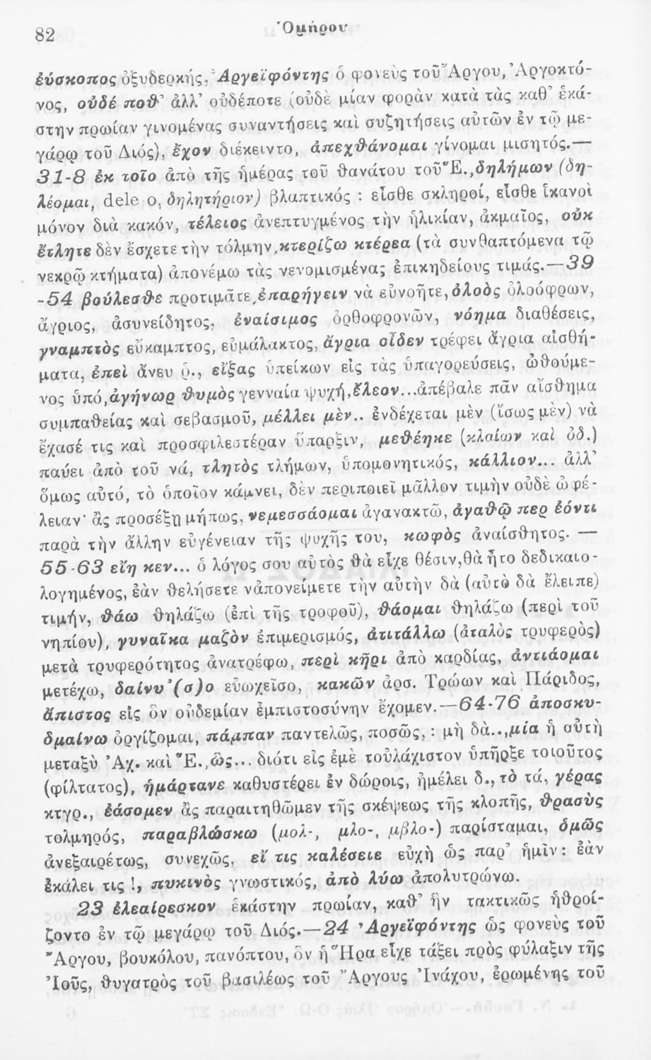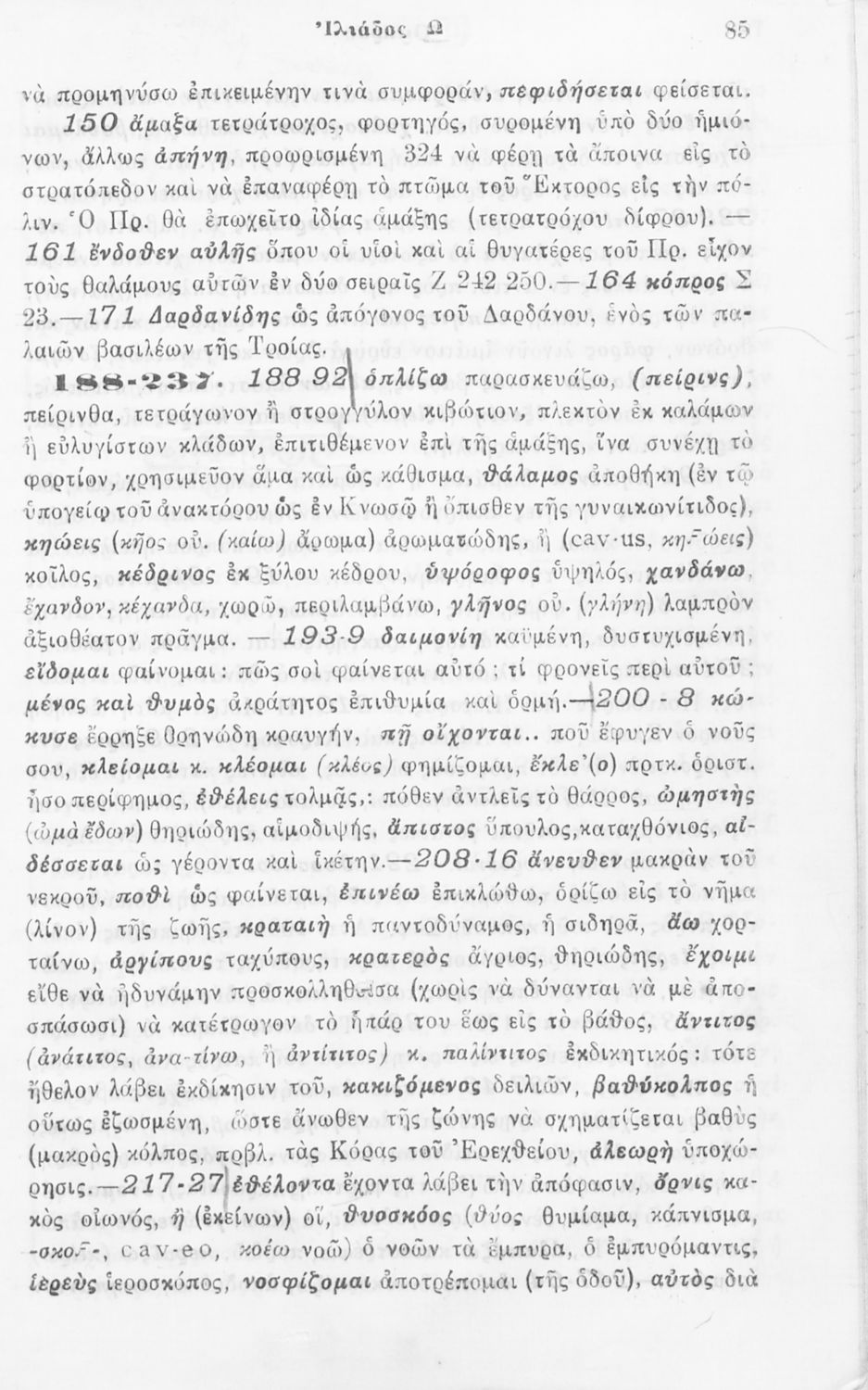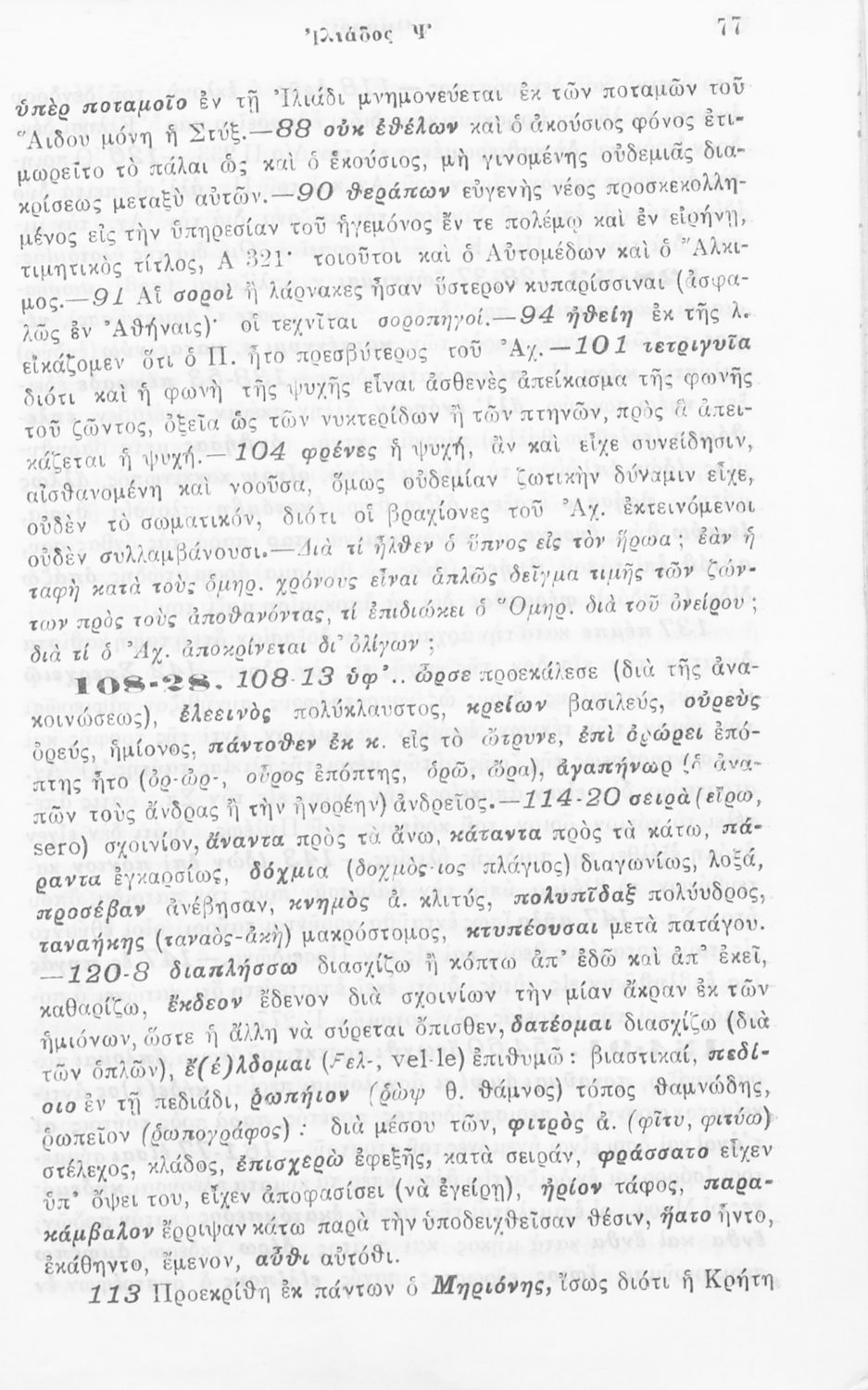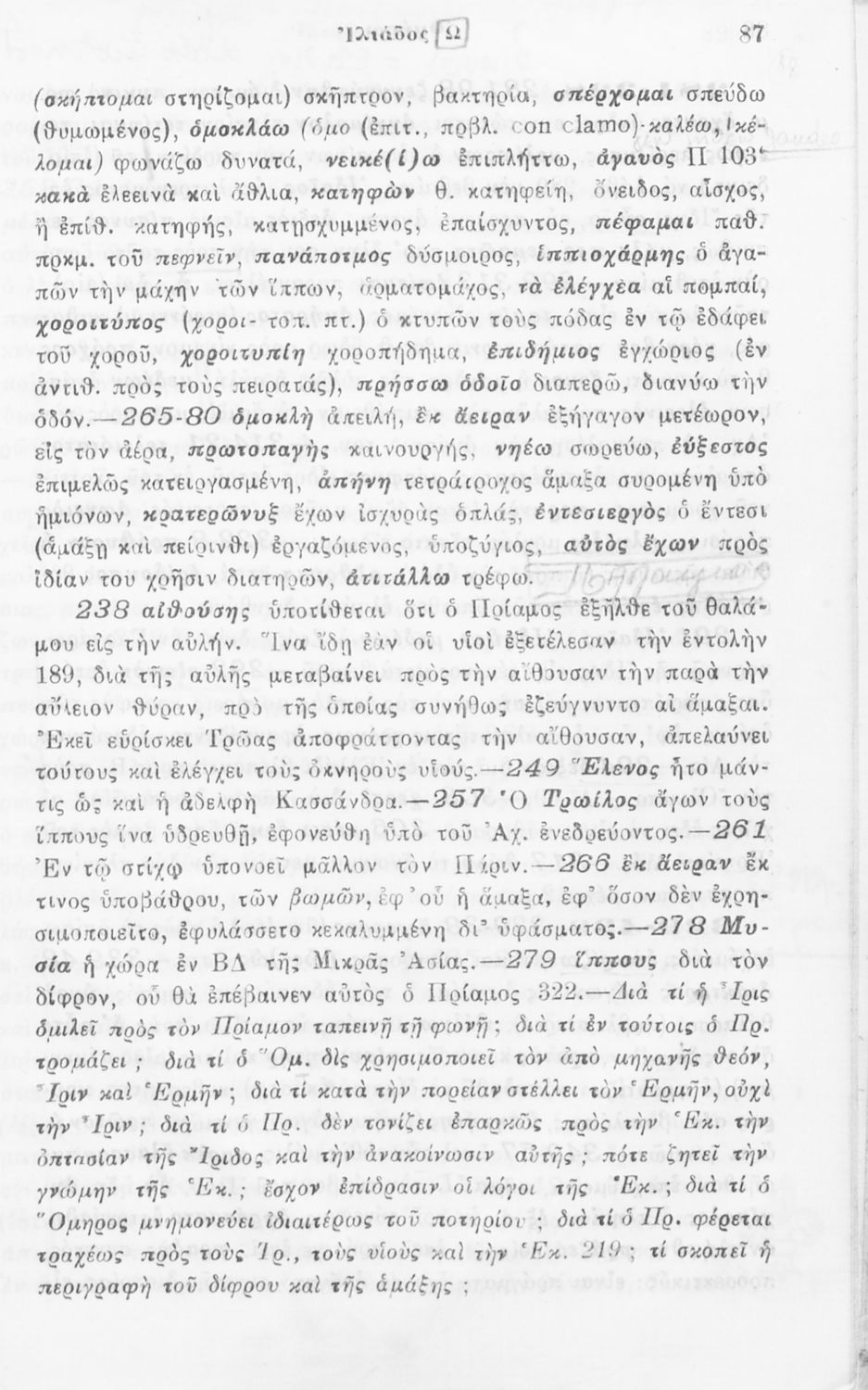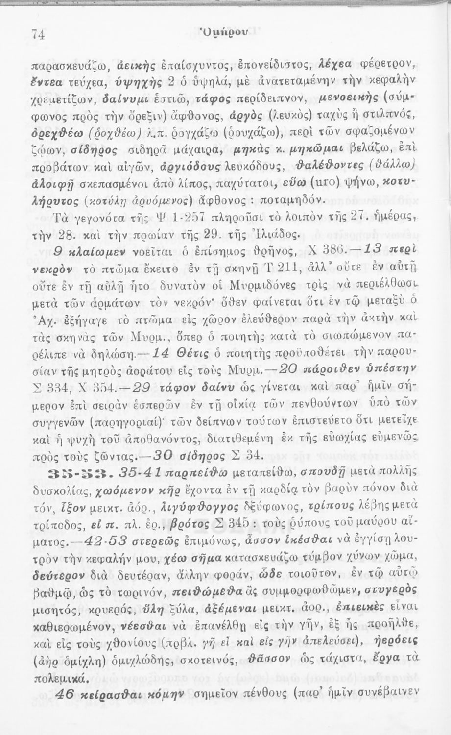Σχολικό εγχειρίδιο Αρχαίων Ελληνικών για την Δ΄ τάξη των Εξαταξίων Γυμνασίων που περιλαμβάνει ετυμολογικά σχόλια στις ραψωδίες Ο-Π-Ρ-Σ-Τ-Χ-Ψ-Ω της Ιλιάδας