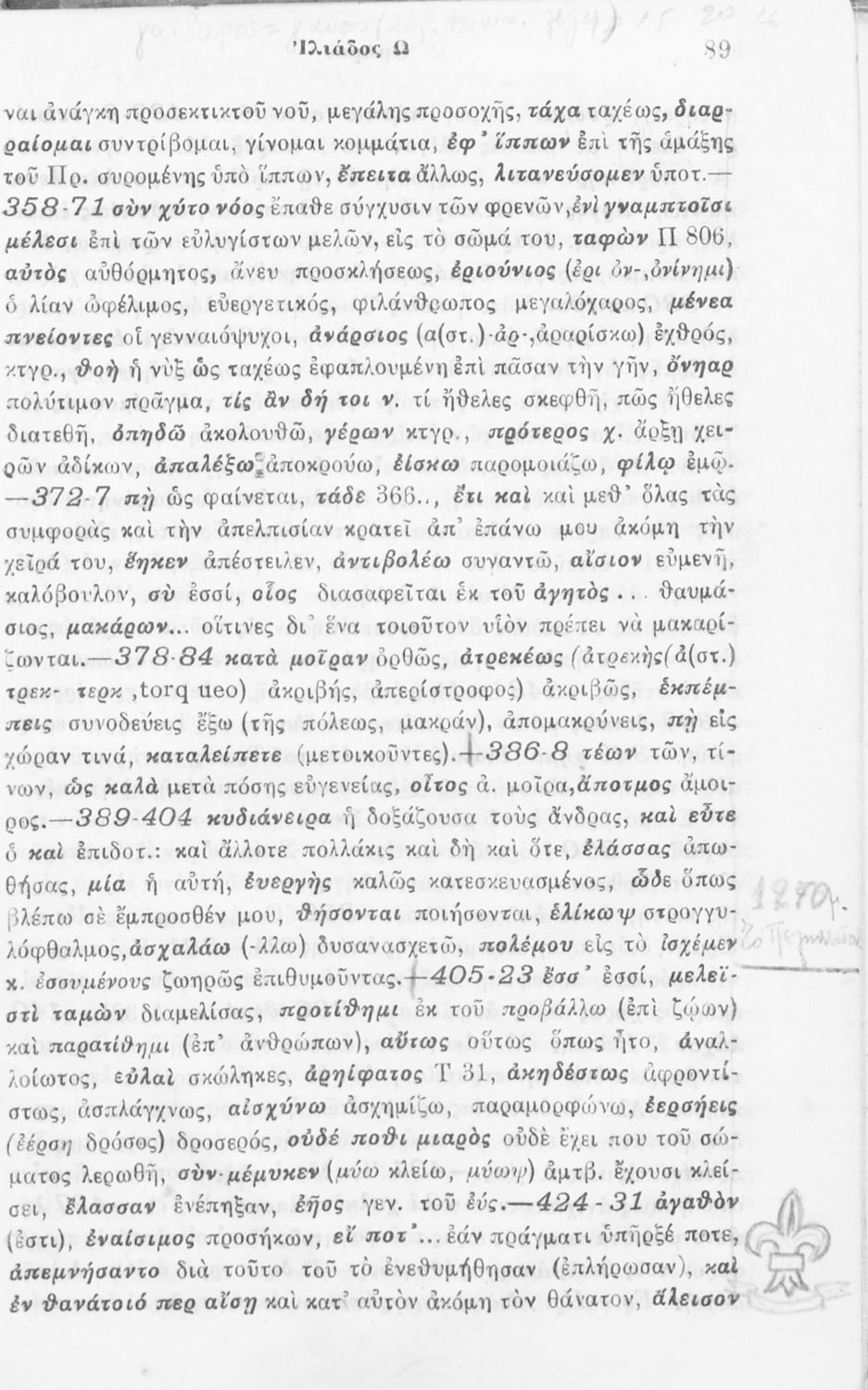 245 0# _aΟμήρου Ιλιάς Γ΄ εκλογή Ο-Π-Ρ-Σ-Τ-Χ-Ψ-Ω προς χρήσιν των μαθητών της Δ΄ τάξεως των Εξαταξίων Γυμνασίων