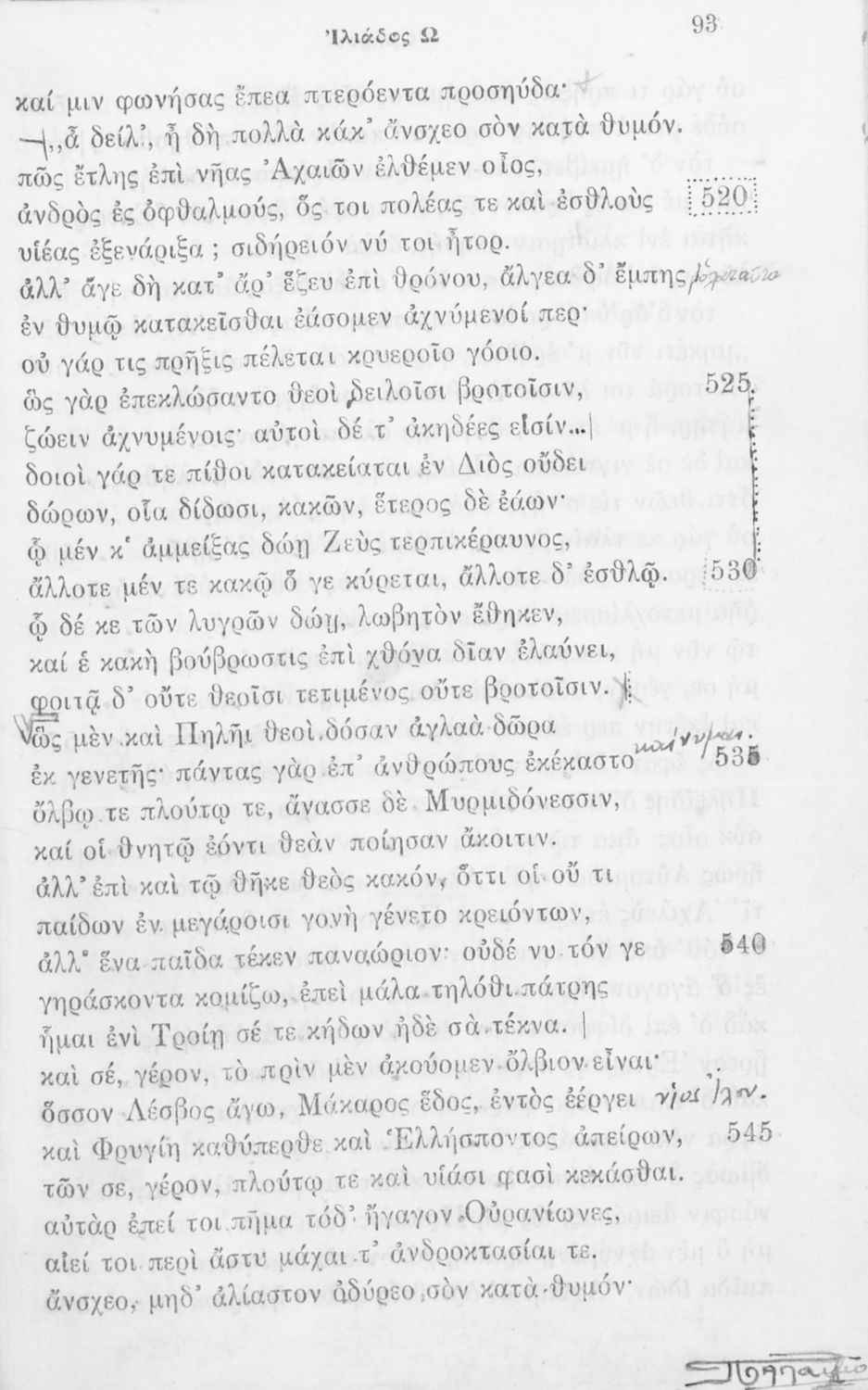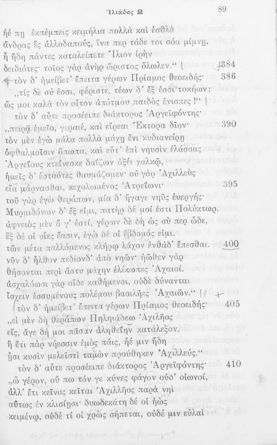 Ομήρου Ιλιάς Γ΄ εκλογή Ο-Π-Ρ-Σ-Τ-Χ-Ψ-Ω προς χρήσιν των μαθητών της Δ΄ τάξεως των Εξαταξίων Γυμνασίων