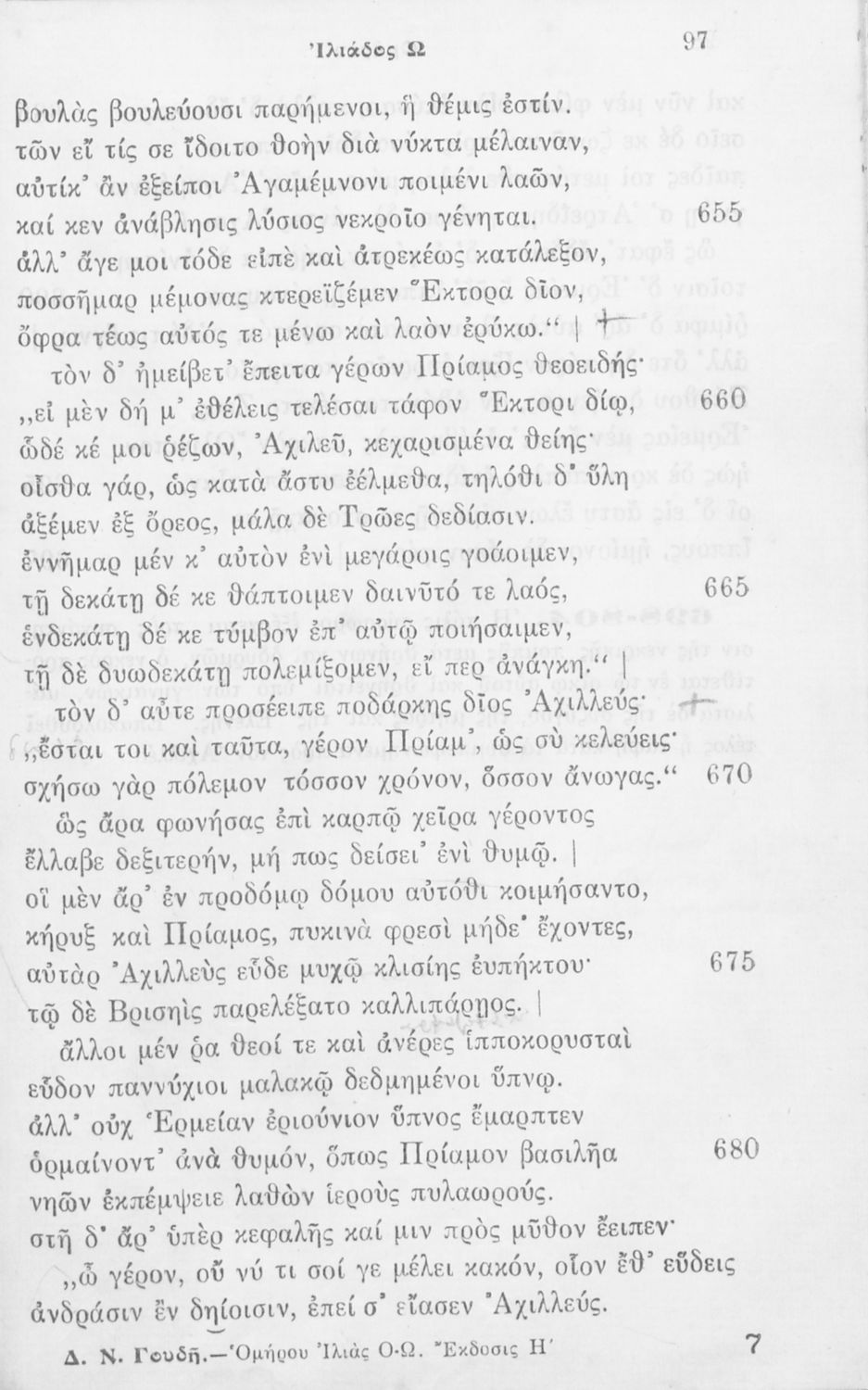 Όμηρος, Δημ. Ν. Γουδής (σχόλια)