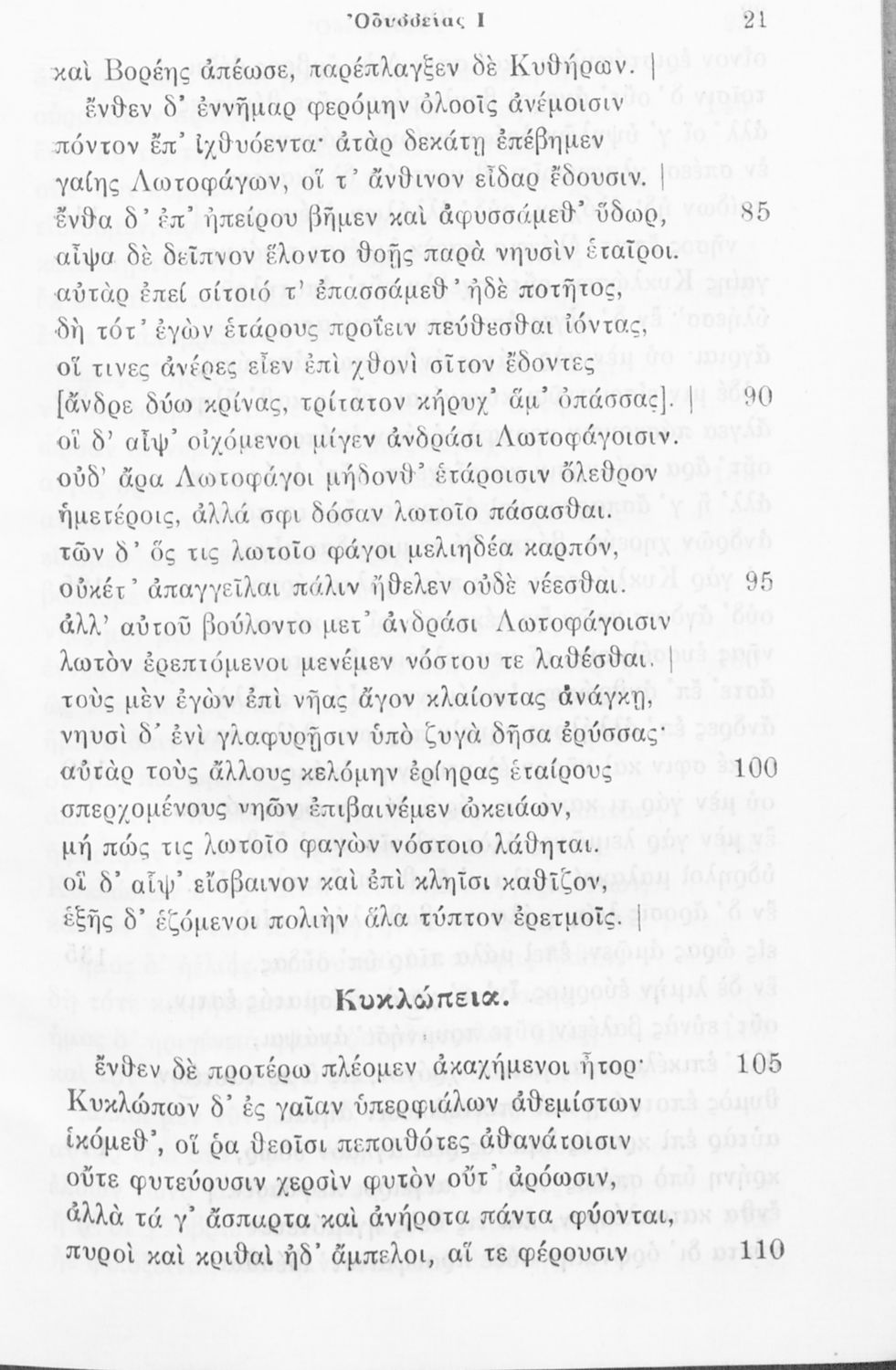 Ομήρου Οδύσσεια Α΄ εκλογή Α-Θ-Ι-Κ προς χρήσιν των μαθητών της Δ΄ τάξεως των Εξαταξίων Γυμνασίων