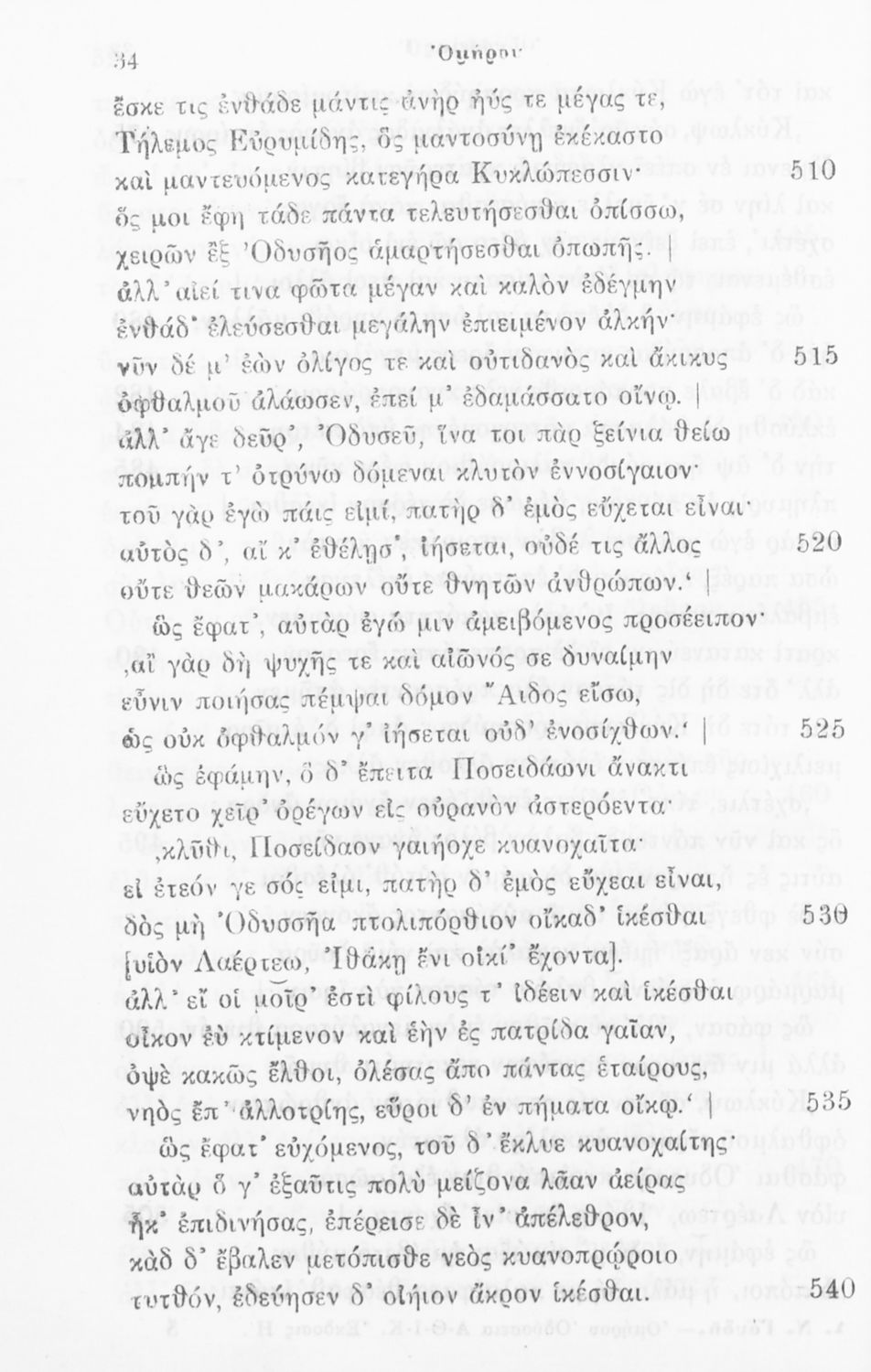 Τίτλος: Ομήρου Οδύσσεια Α΄ εκλογή Α-Θ-Ι-Κ προς χρήσιν των μαθητών της Δ΄ τάξεως των Εξαταξίων Γυμνασίων