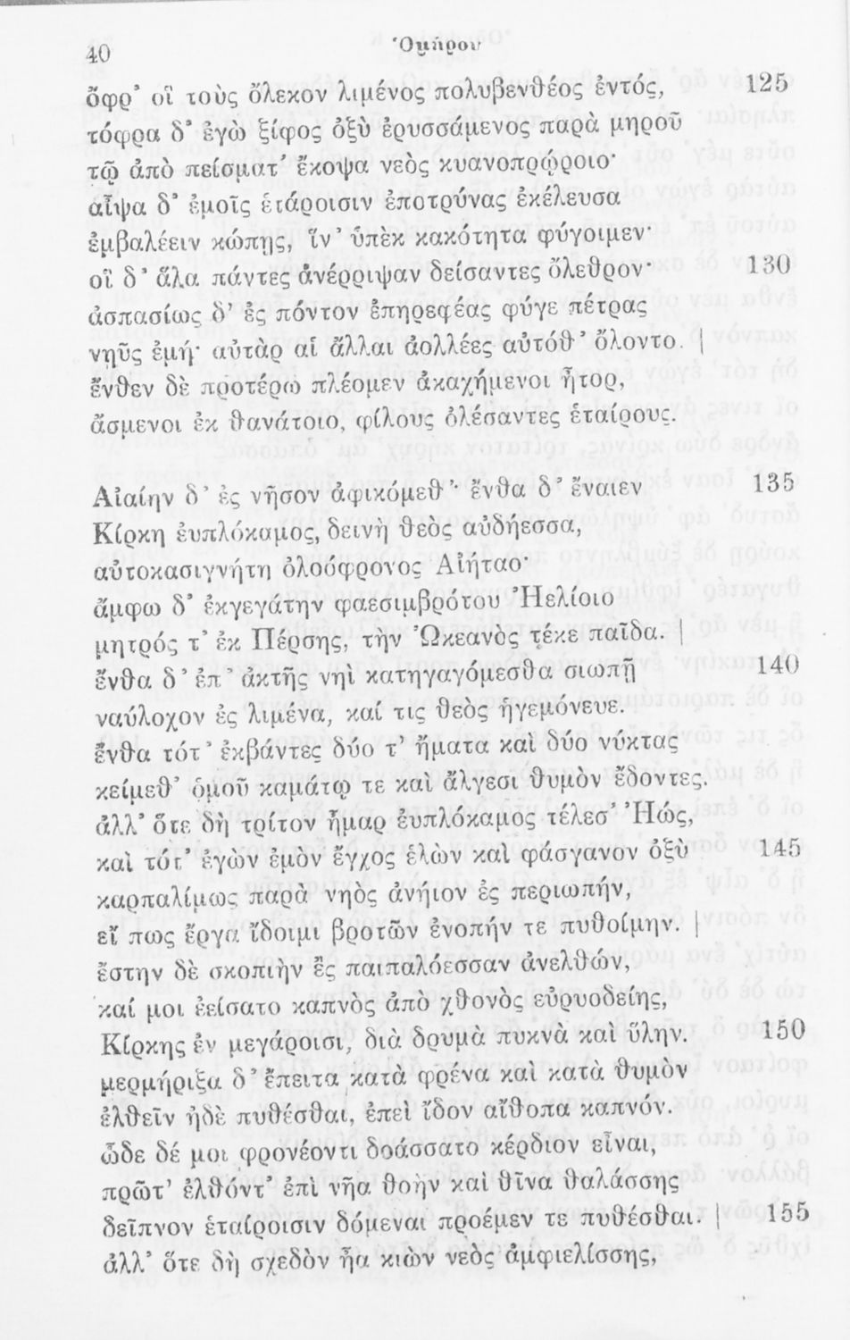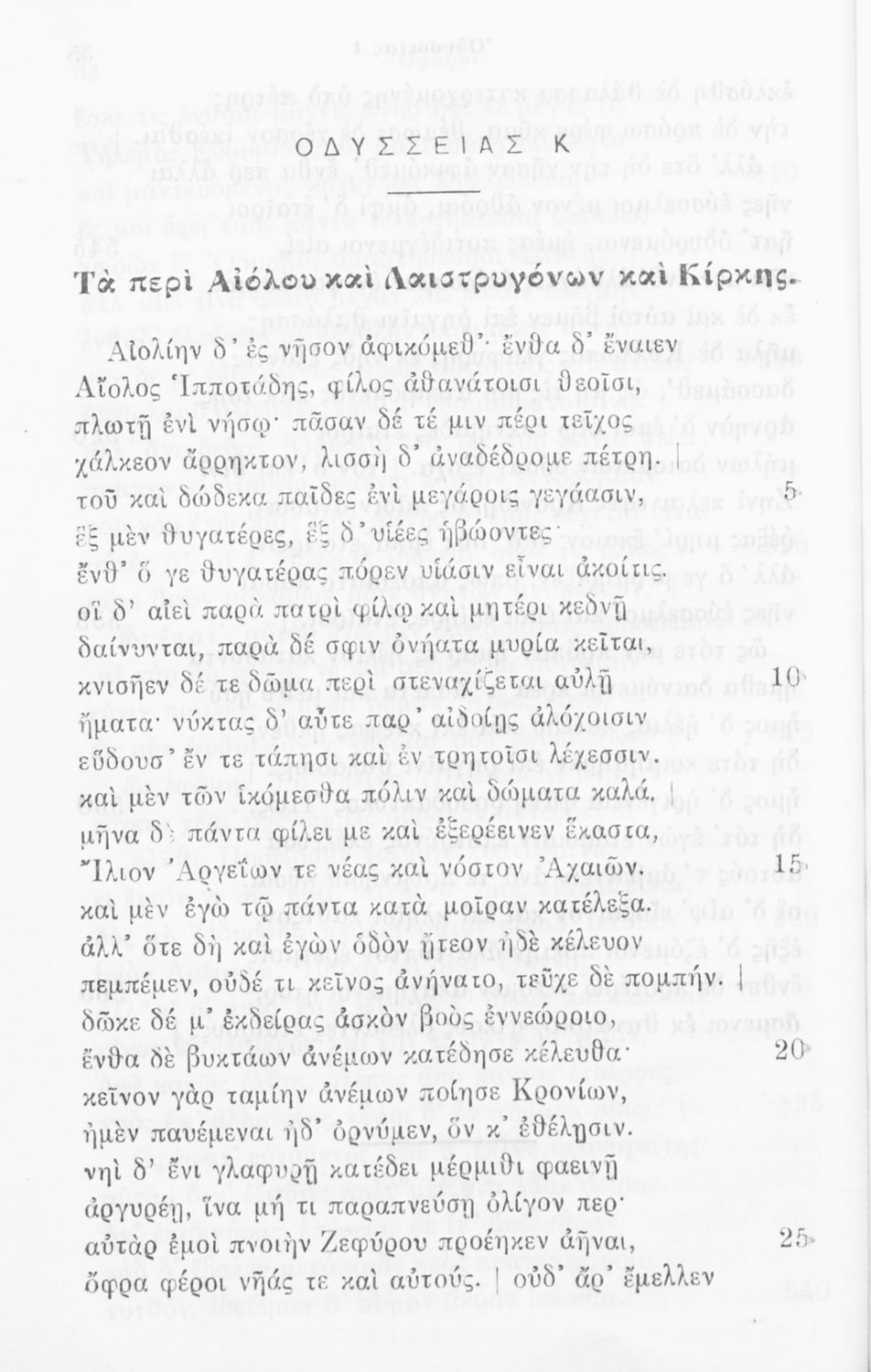 Σχολικό εγχειρίδιο Αρχαίων Ελληνικών για την Ε΄ τάξη των Εξαταξίων Γυμνασίων που περιλαμβάνει περίληψη των ραψωδιών Κ-Ν της Οδύσσειας και αποσπάσματα από τις ραψωδίες Ν-Π-Ρ-σ.